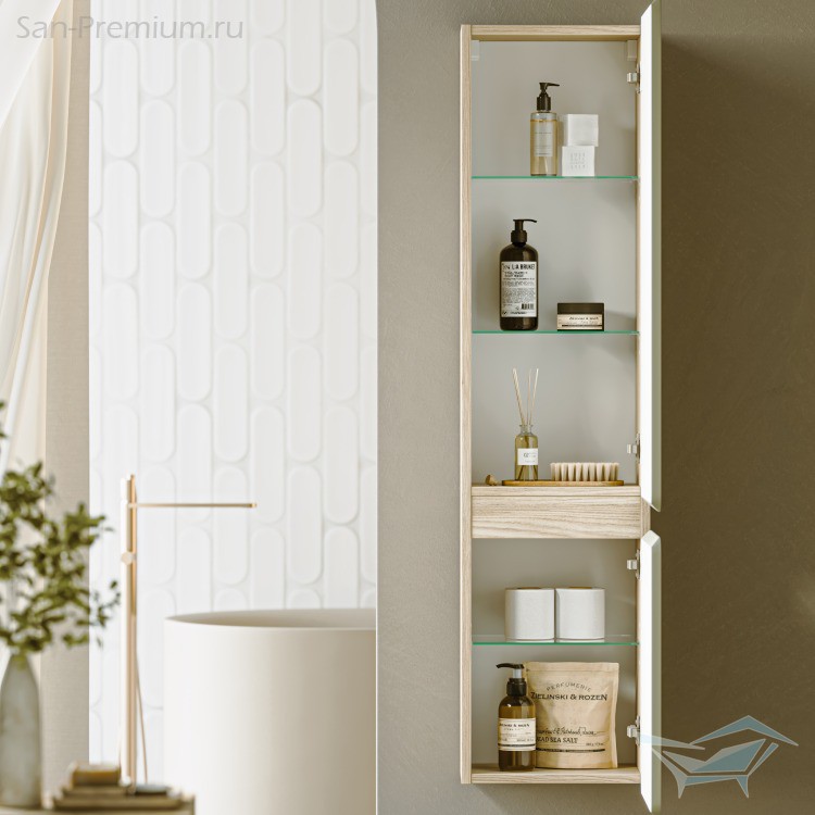 Компактный пенал шириной 35 см завершает композицию, сохраняя лаконичность и гибкость планировки. Он идеально подходит как самостоятельный элемент или часть общей композиции, добавляя функциональность и гармонию в интерьер. Пенал комплектуется тремя стеклянными полочками.