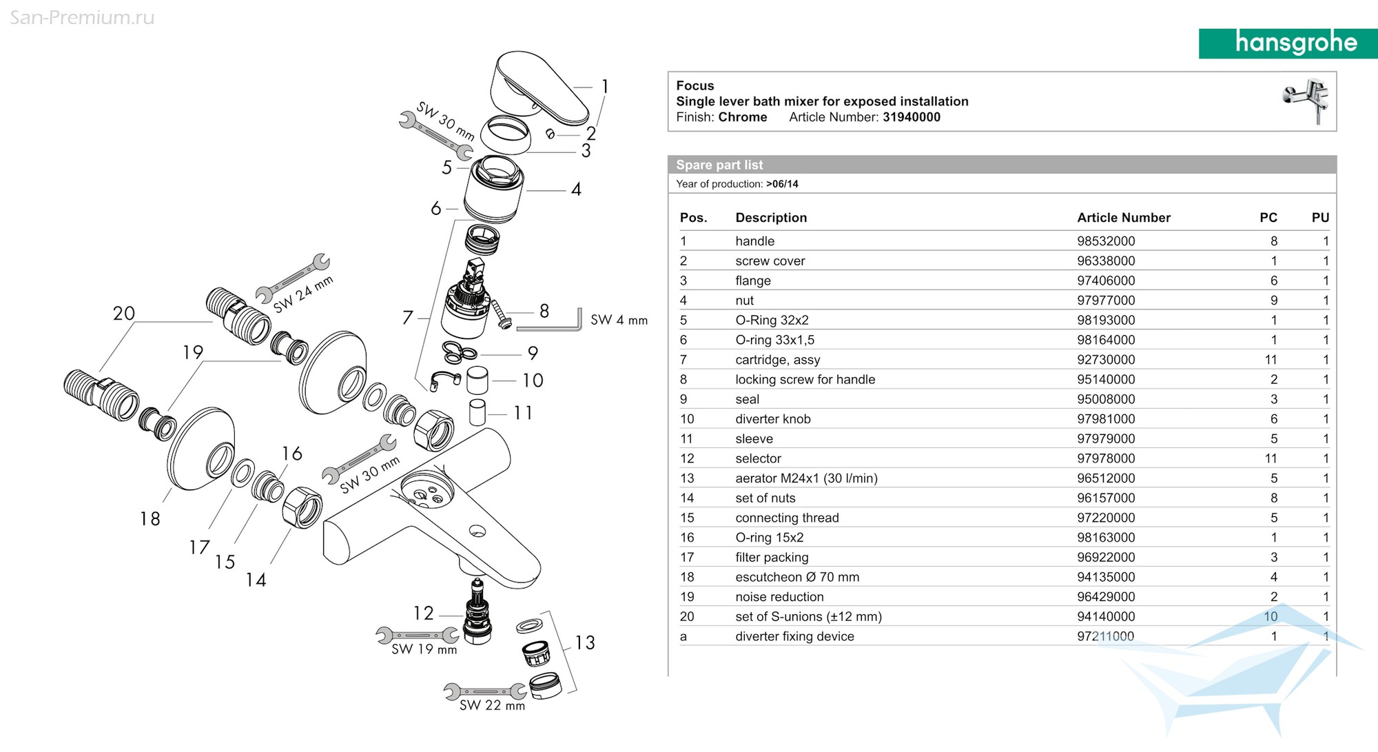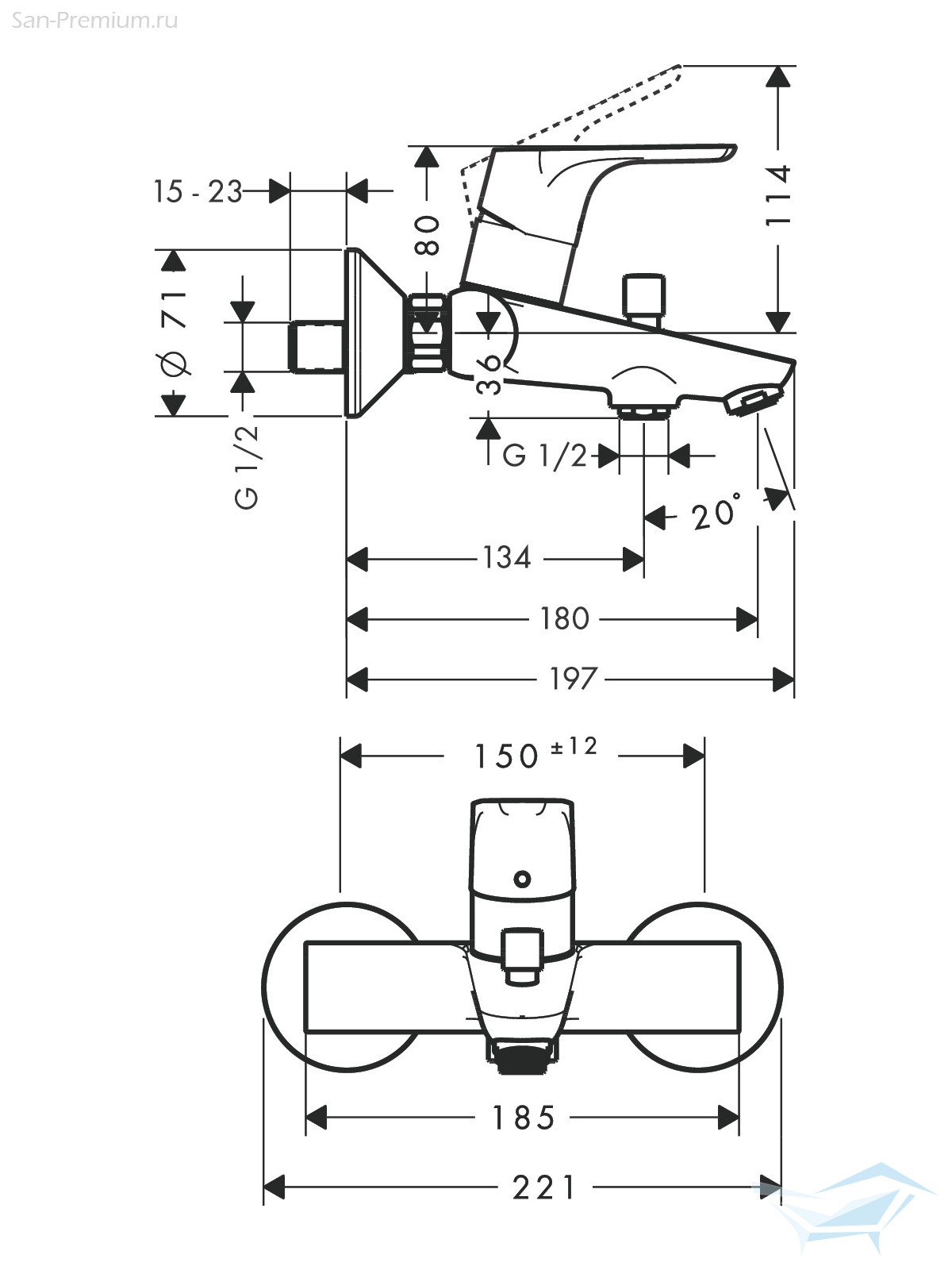 Смеситель для ванны Hansgrohe Focus, хром 31940000