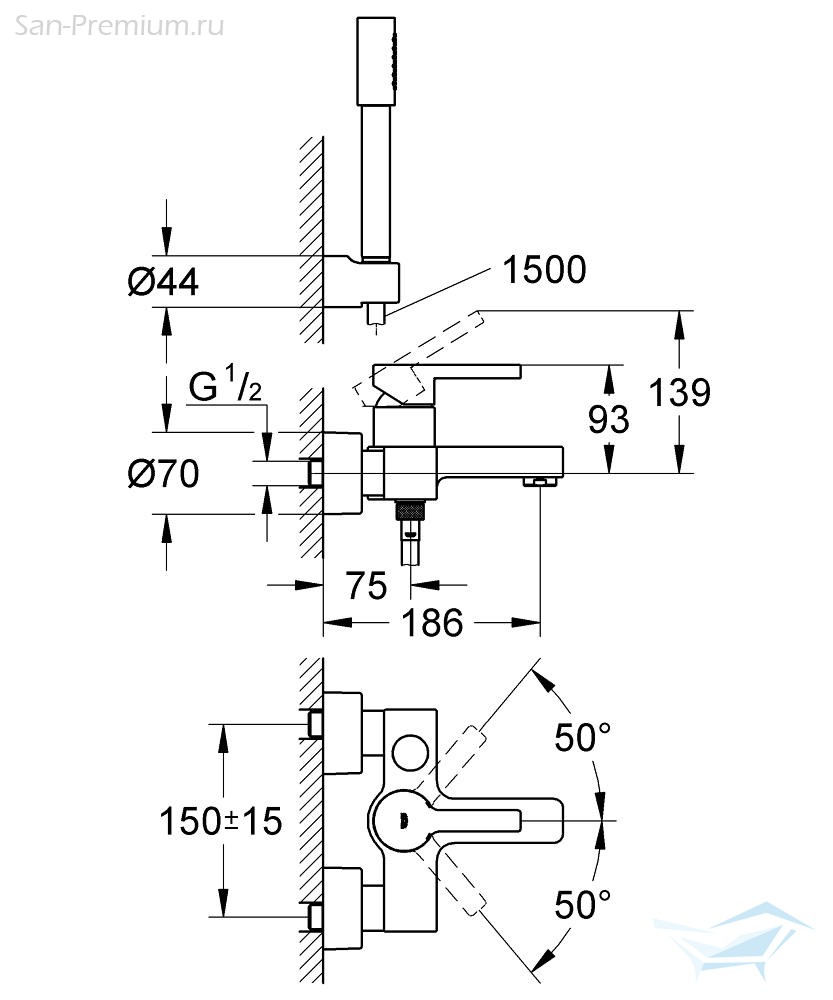 Смеситель для ванны Grohe Lineare, душевой гарнитур, хром 33850000