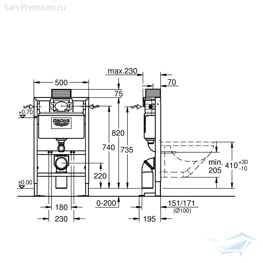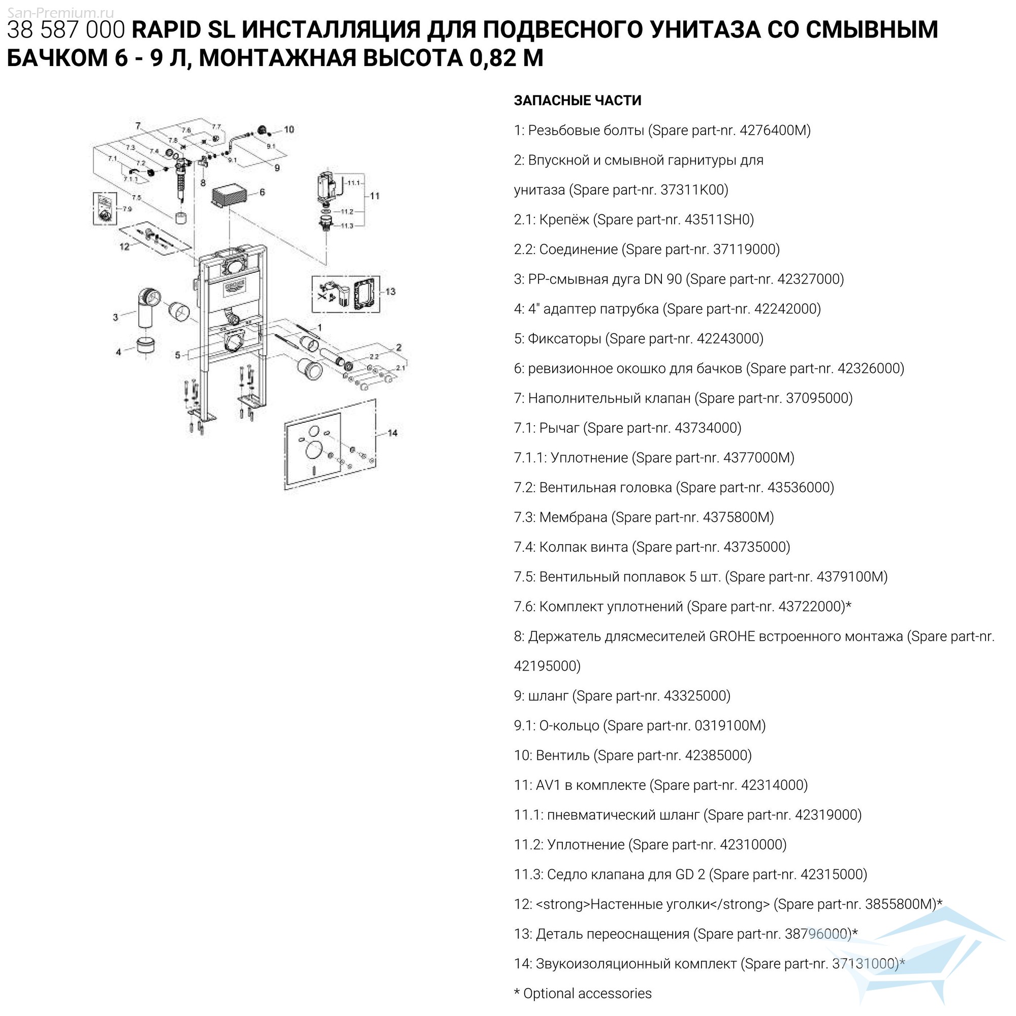 Инсталляция для унитаза Grohe Rapid SL 82см, для свободно стоящего монтажа / 38587000
