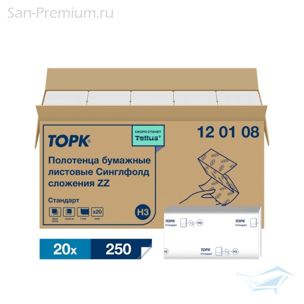 Листовые полотенца Tork Singlefold для рук, 20 упаковок по 250 листов, сложения ZZ 120108