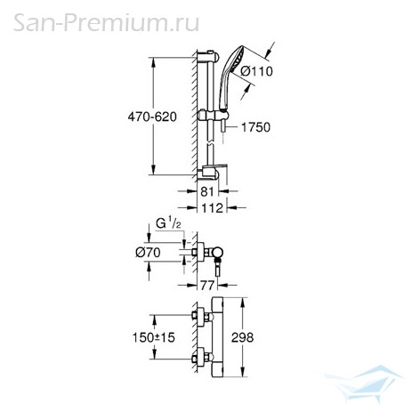 - Grohtherm 1000 Cosmopolitan M Термостат для душа 1/2" (34065002)