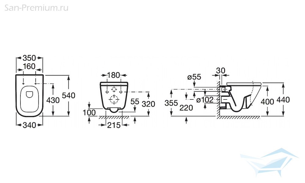 Подвесной унитаз Roca The Gap, безободковый, без сидения, белый