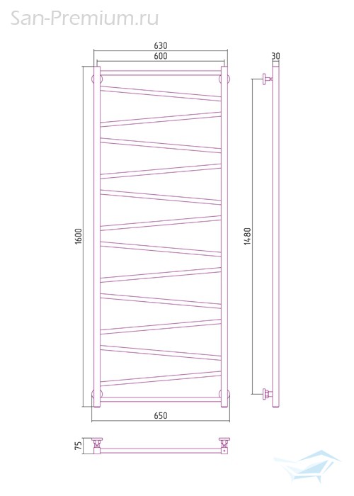 Полотенцесушитель 1600x600 водяной Сунержа Сирокко 00-0253-1660