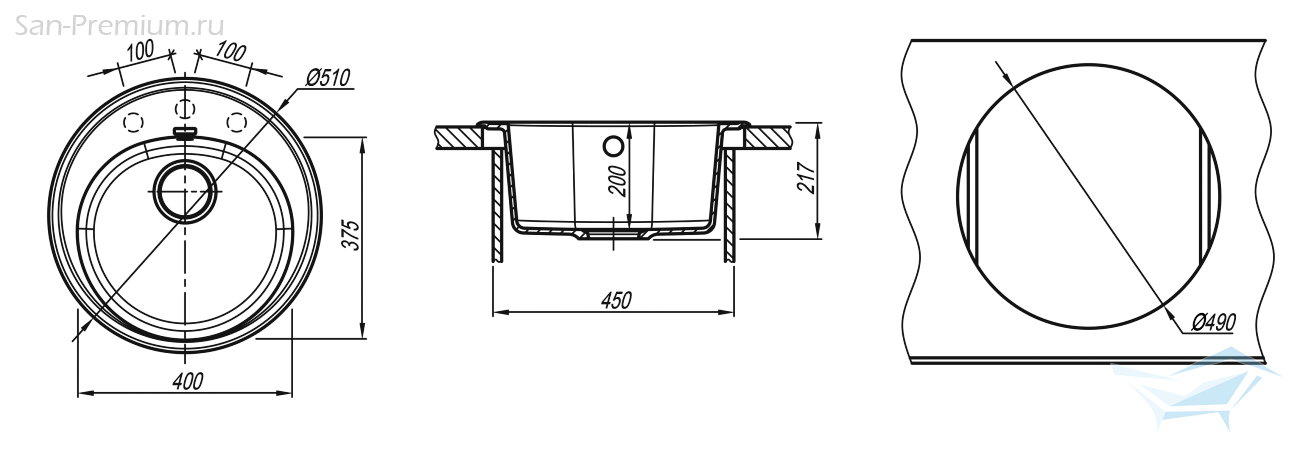 - Размер мойки (ДхШ): 510x510 мм
