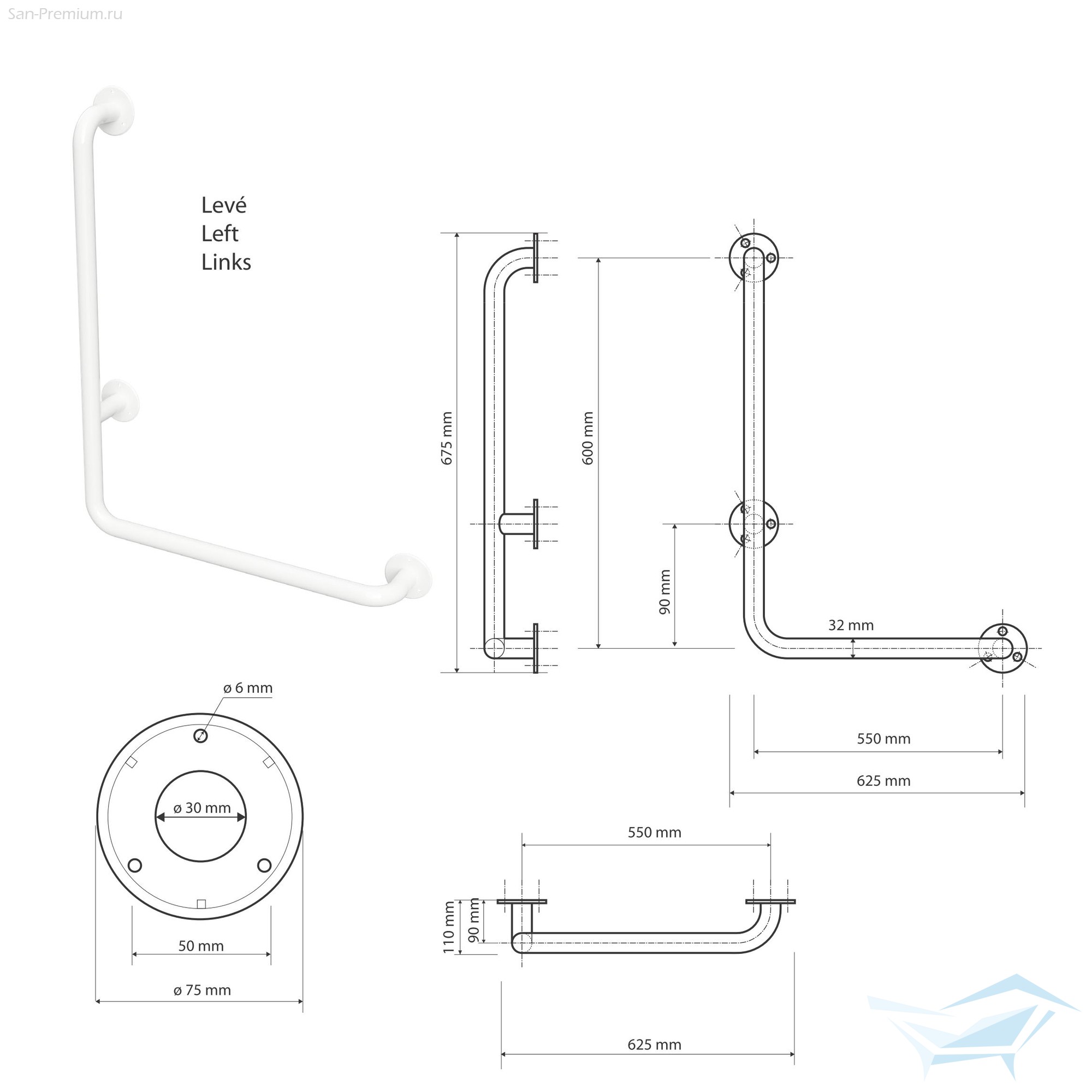 Поручень для душа Bemeta Help 680, левый, с крышками, белый / 301112073
