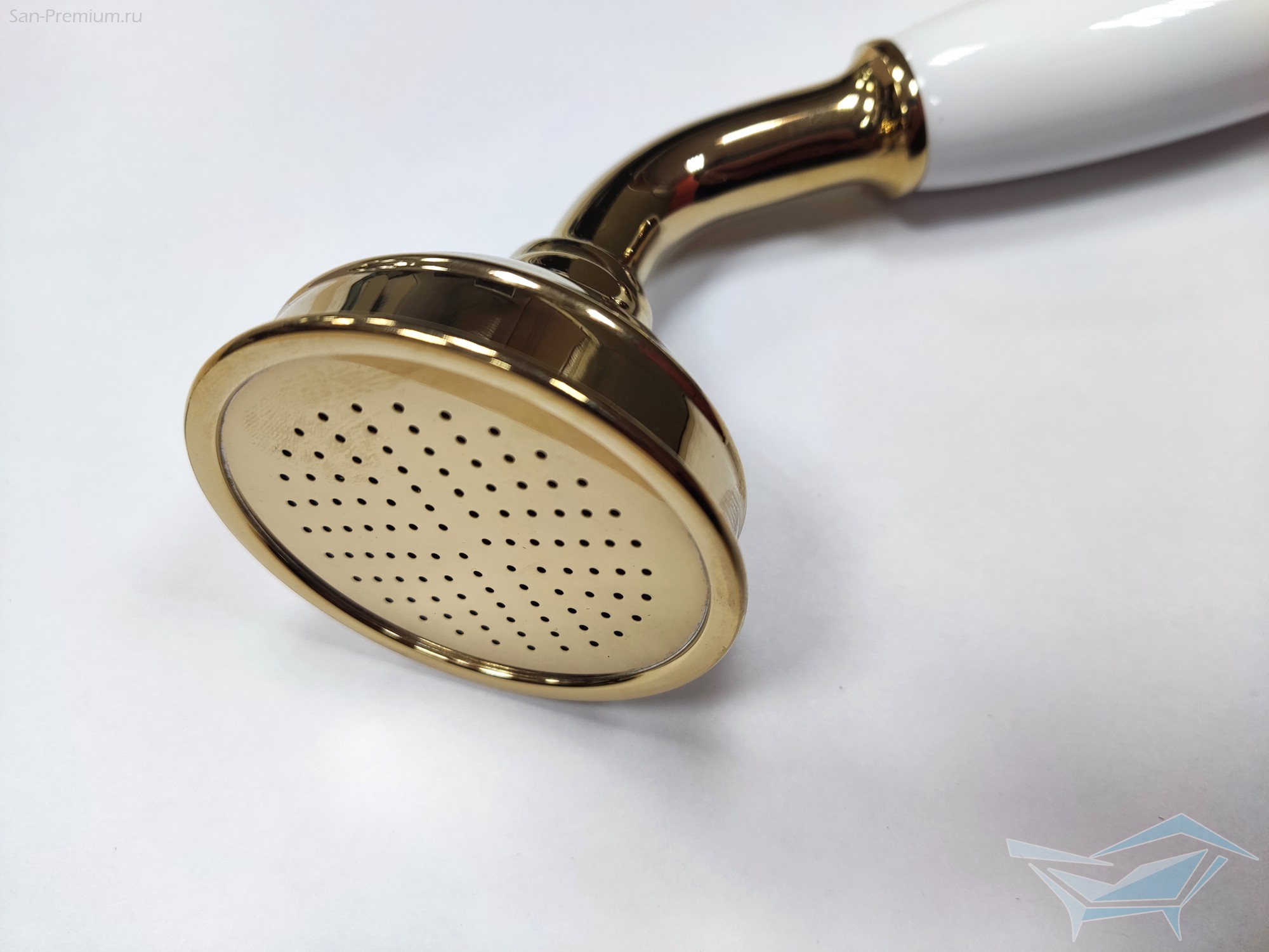 Лейка для душа RAV Slezak Retro металл, белая керамическая ручка, золото / KS0017Z