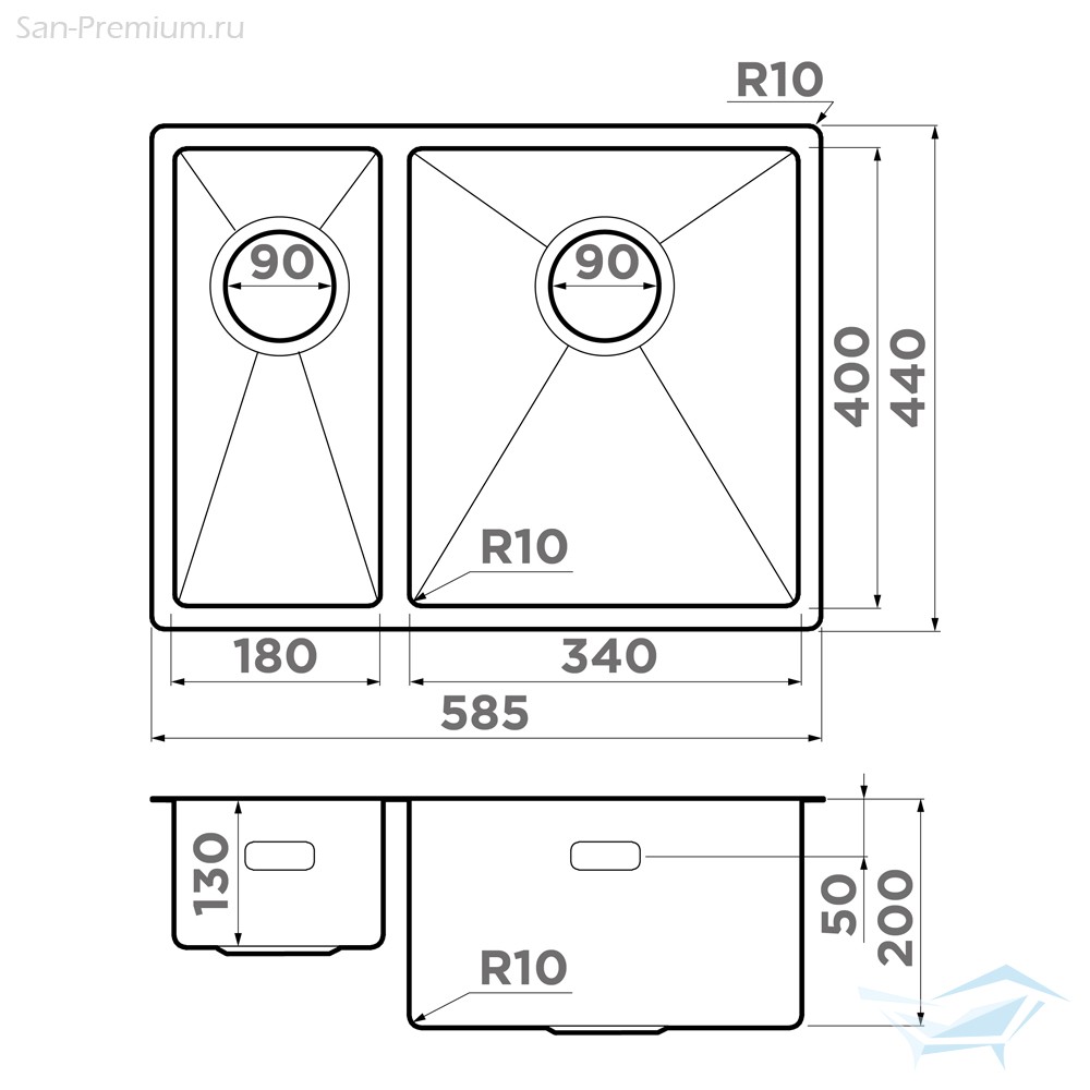 - Комплектация: крепления для монтажа, уплотнительная подкладка, донный клапан, сифон.