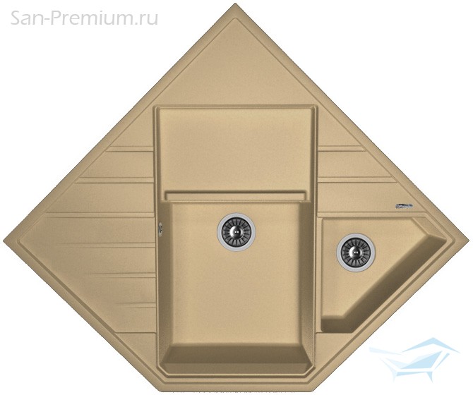 Кухонная мойка Florentina Бомбей 900, угловая, две чаши, бежевый / 20.375.J0900.104