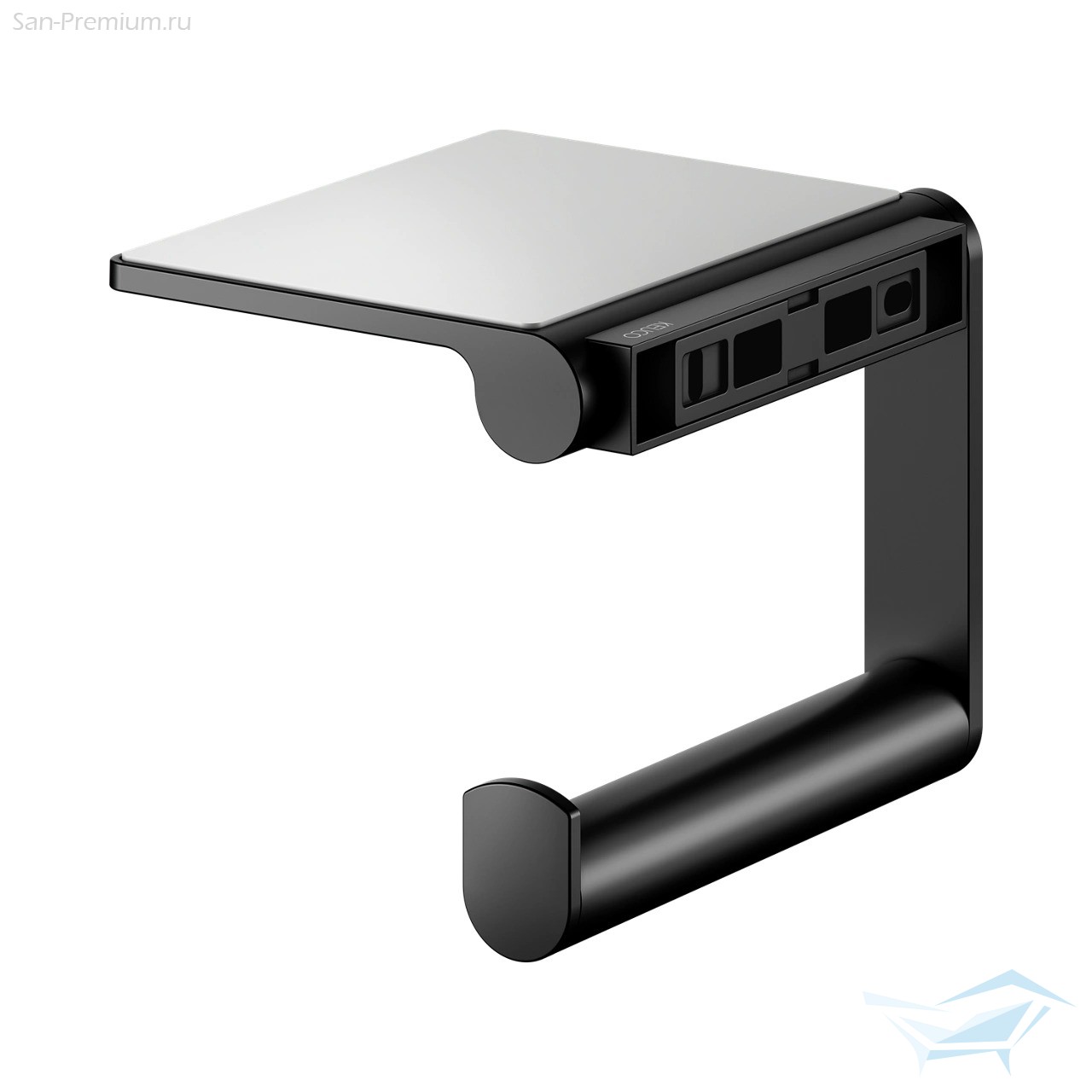 Держатель туалетной бумаги Keuco Plan, с полочкой, чёрный матовый / 14973 370000