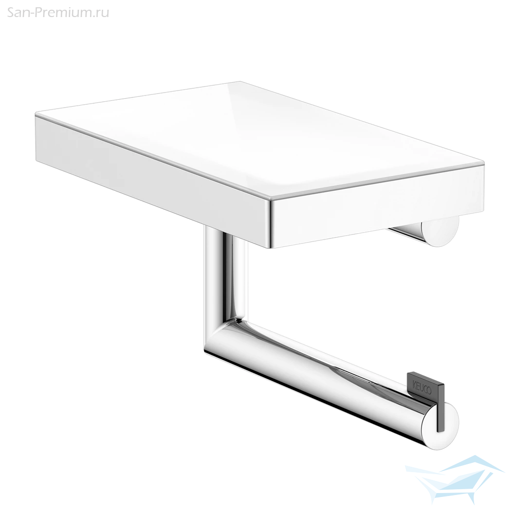 Держатель туалетной бумаги Keuco из коллекции Reva с полкой для мобильных телефонов или других мелких предметов – стильное и функциональное решение для вашей ванной комнаты или туалета.