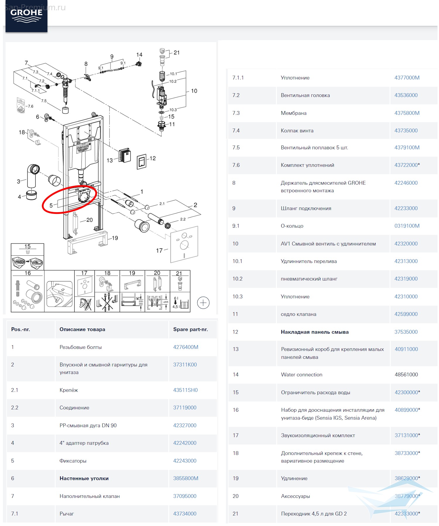 Крепление канализационного отвода для инсталляции Grohe, фиксаторы 42243000