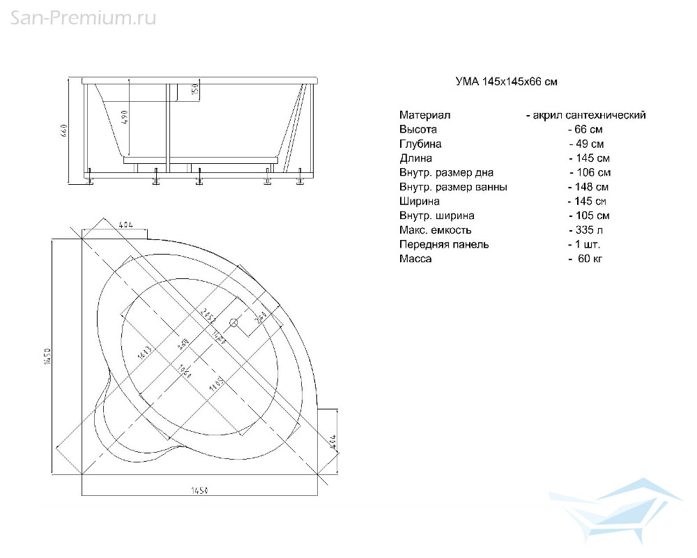 - Вместимость воды: 335 л