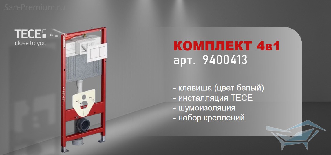 - Комплектация: звукоизоляция, кнопка смыва, кронштейны для стенового крепления, рама