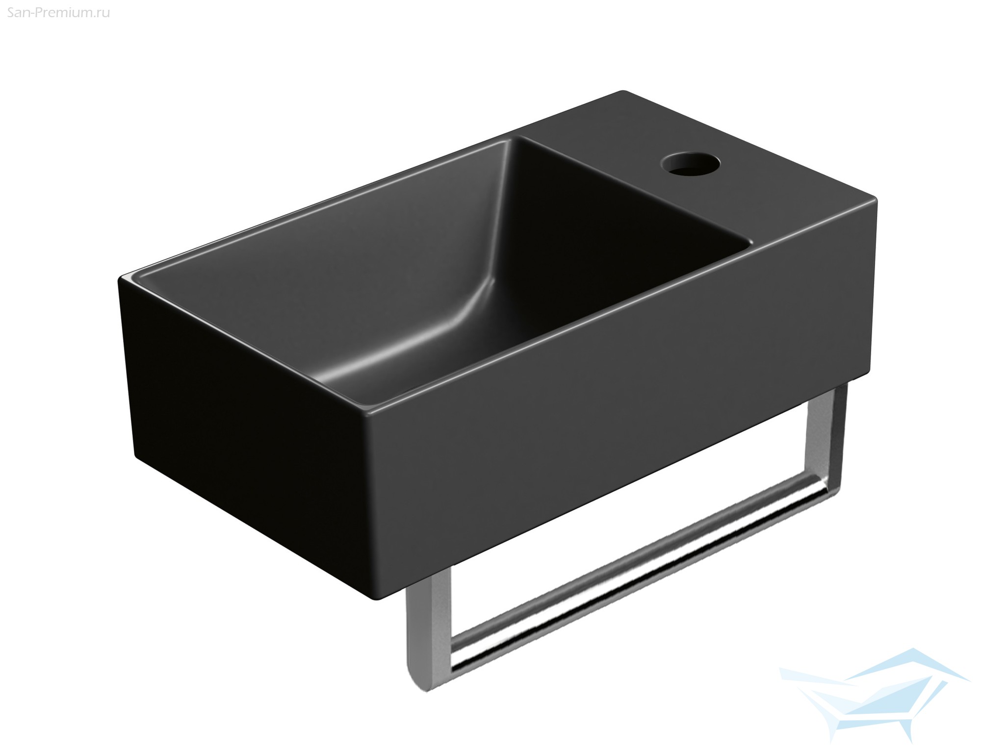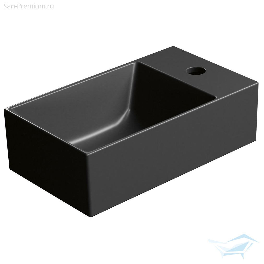 Раковина накладная/подвесная прямоугольная GSI KUBE X 9484126 400 х 230 мм, с отверстием под смеситель справа/слева, цвет Чёрный матовый Ardesia:
