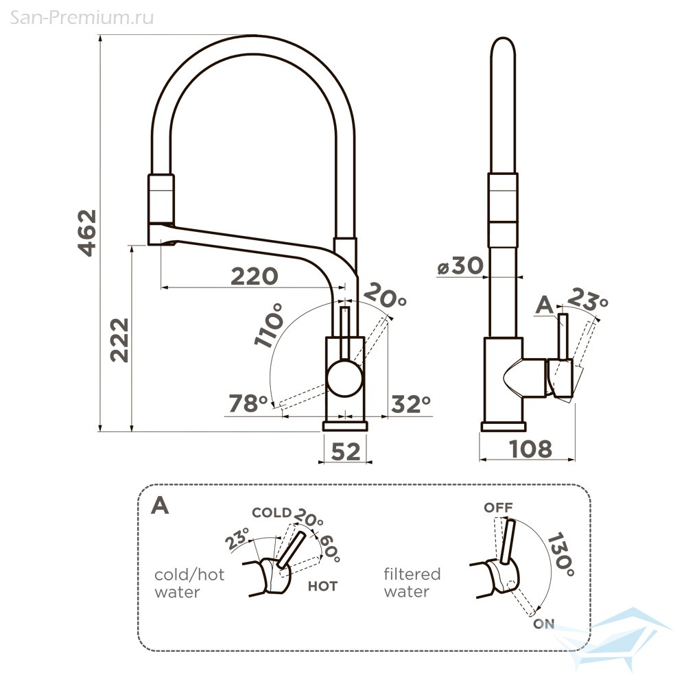 Смеситель для кухни Omoikiri Sinto 2 Plus, подключение питьевой воды