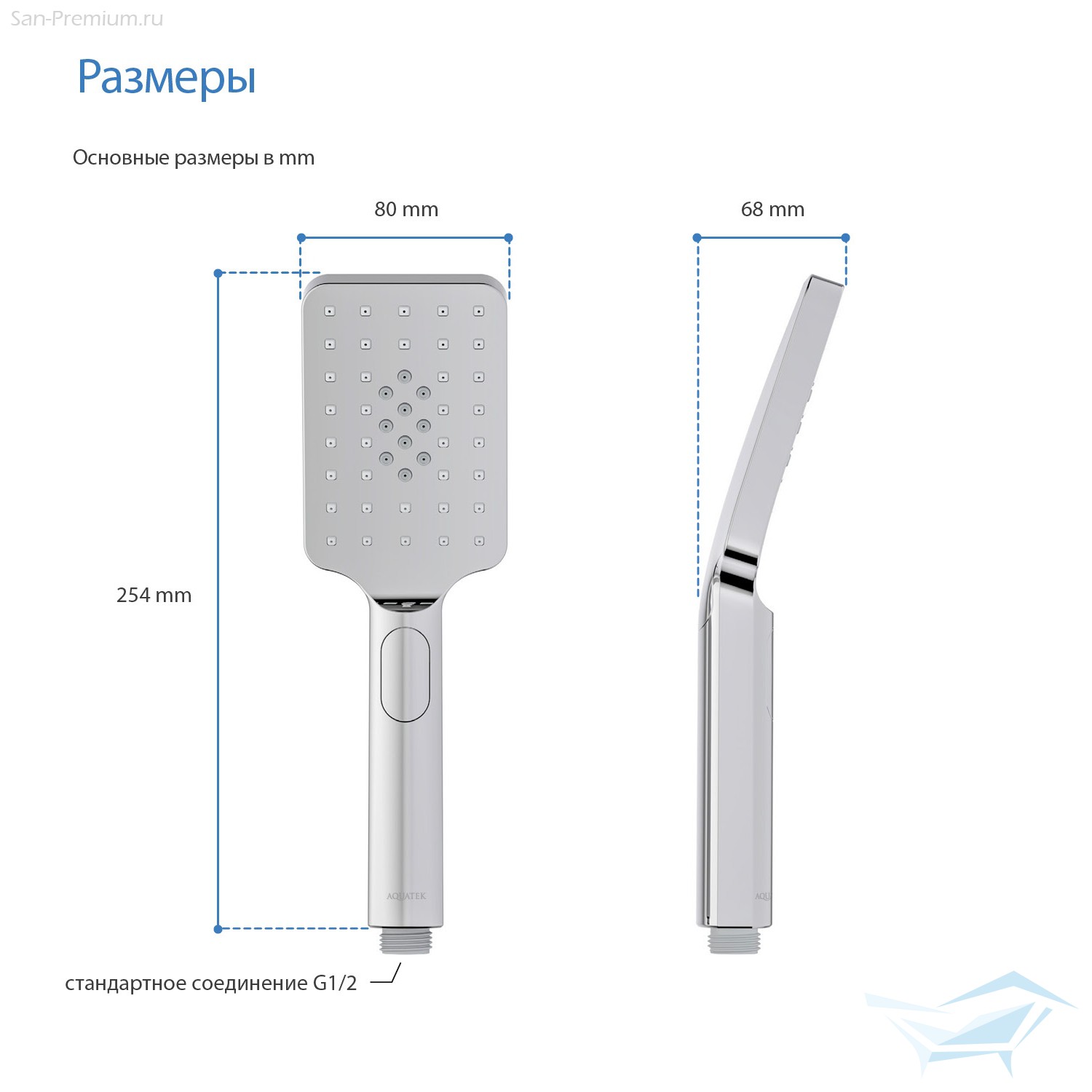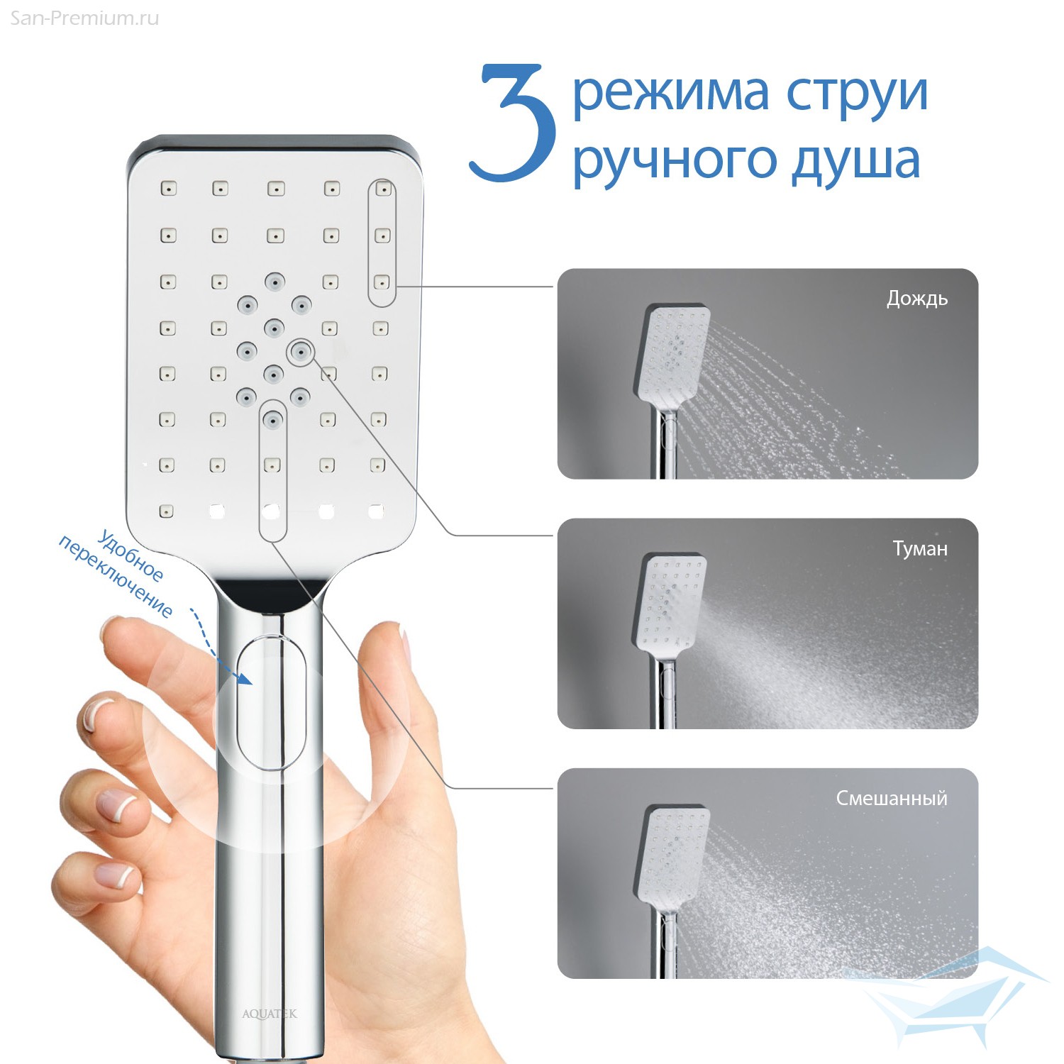 Ручной душ Aquatek Лира Select 80, 3jet, ABS-пластик, хром