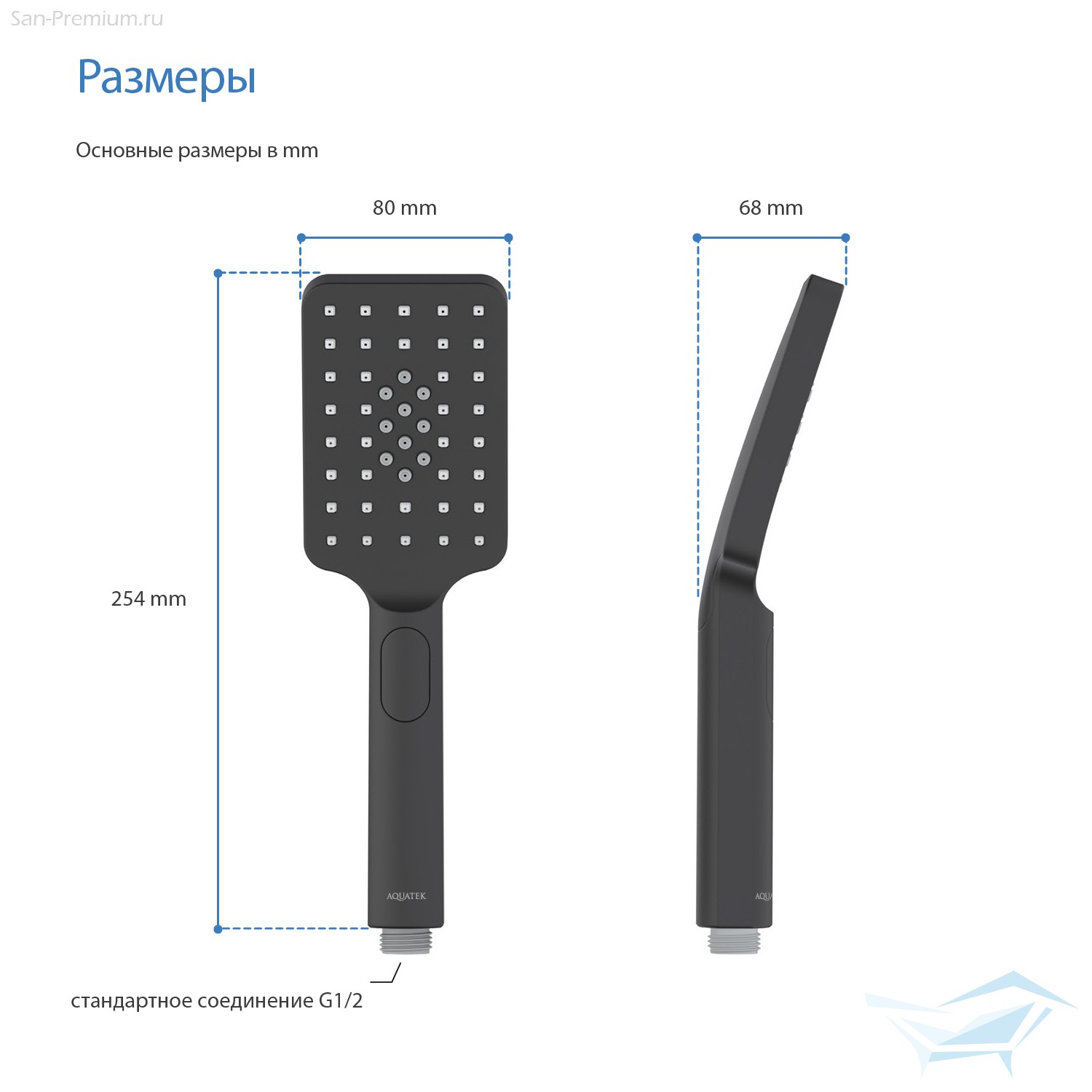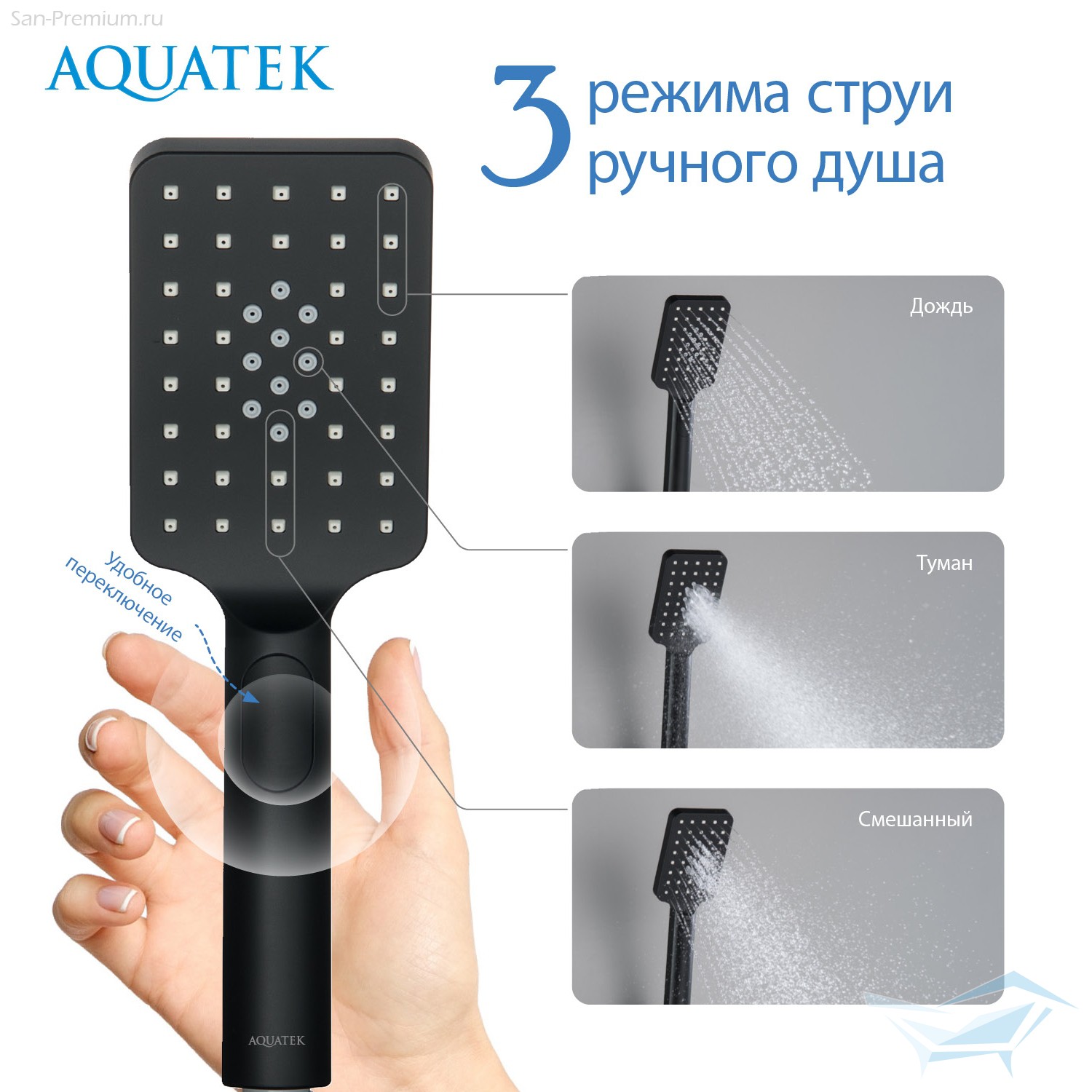 Ручной душ Aquatek Лира Select 80, 3jet, ABS-пластик, чёрный матовый