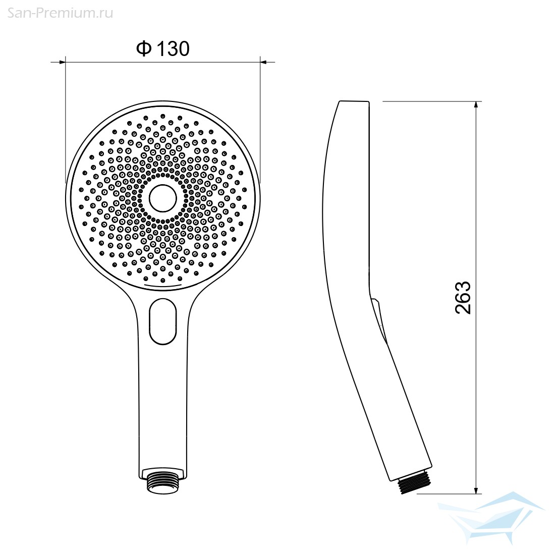 - Тип: ручной душ (лейка без шланга)