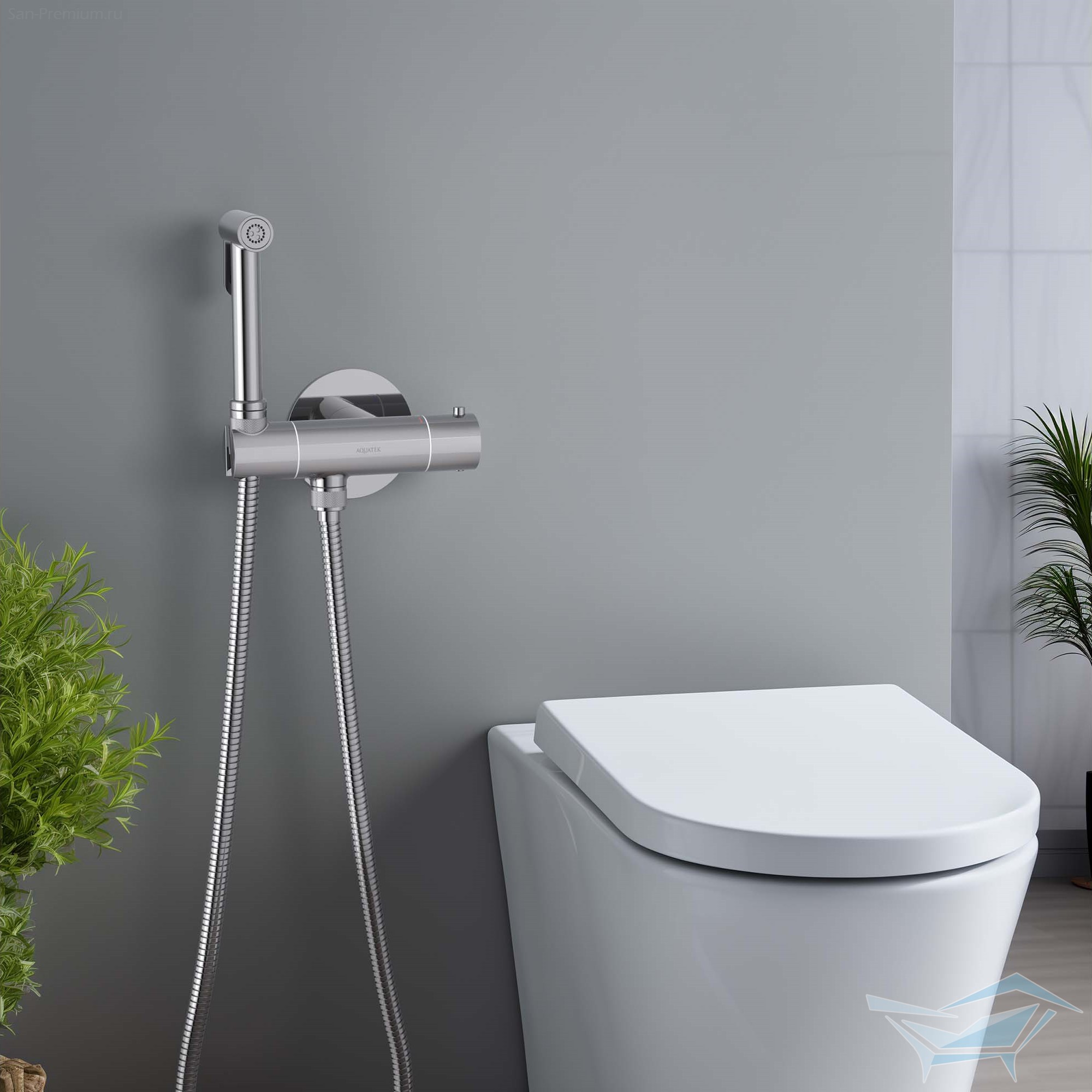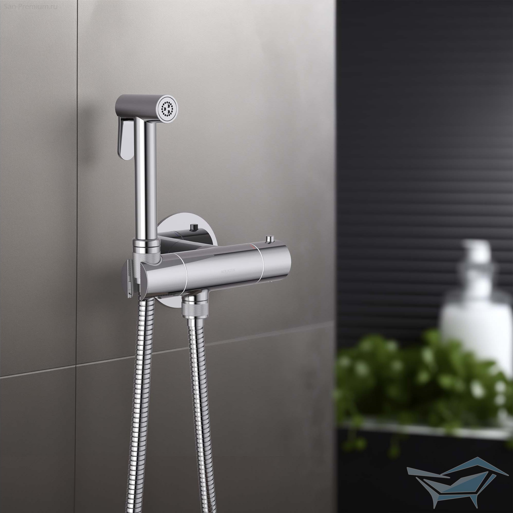 Гигиенический душ с термостатом Aquatek Оберон, встраиваемый, хром / AQ1027CR