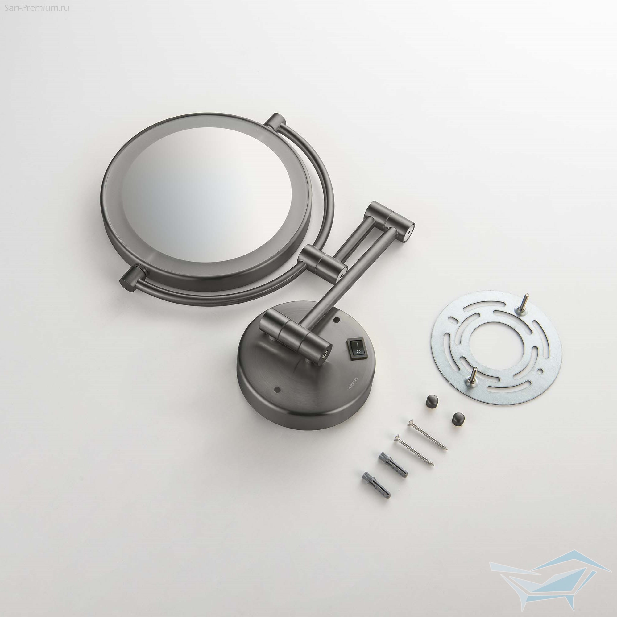 Зеркало косметическое Aquatek настенное с подсветкой, x5, оружейная сталь / AQ4912BGM