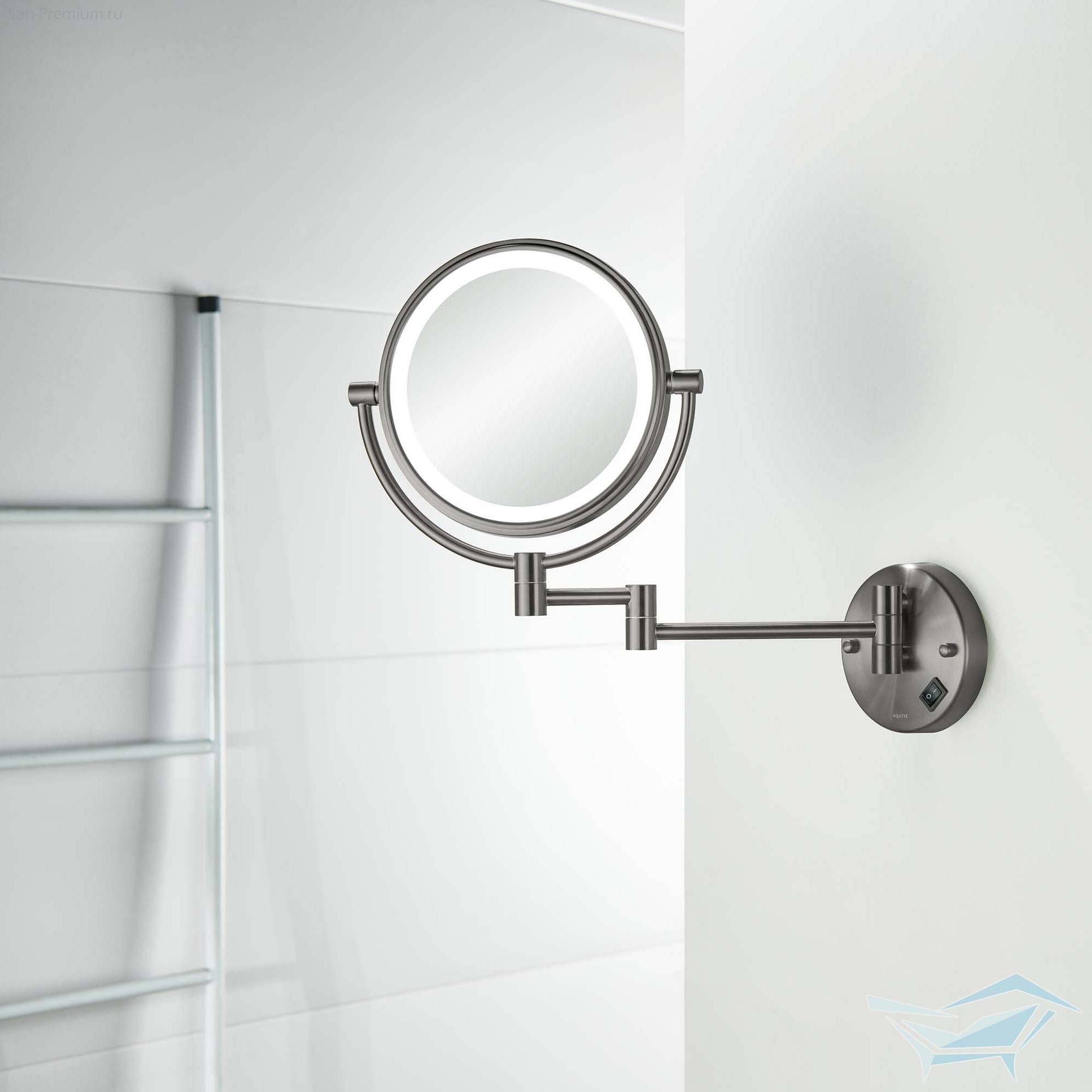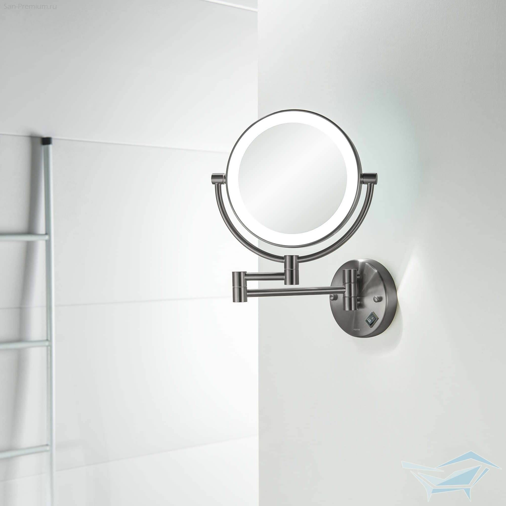 Зеркало косметическое Aquatek настенное, с подсветкой, x5, хром / AQ4912CR