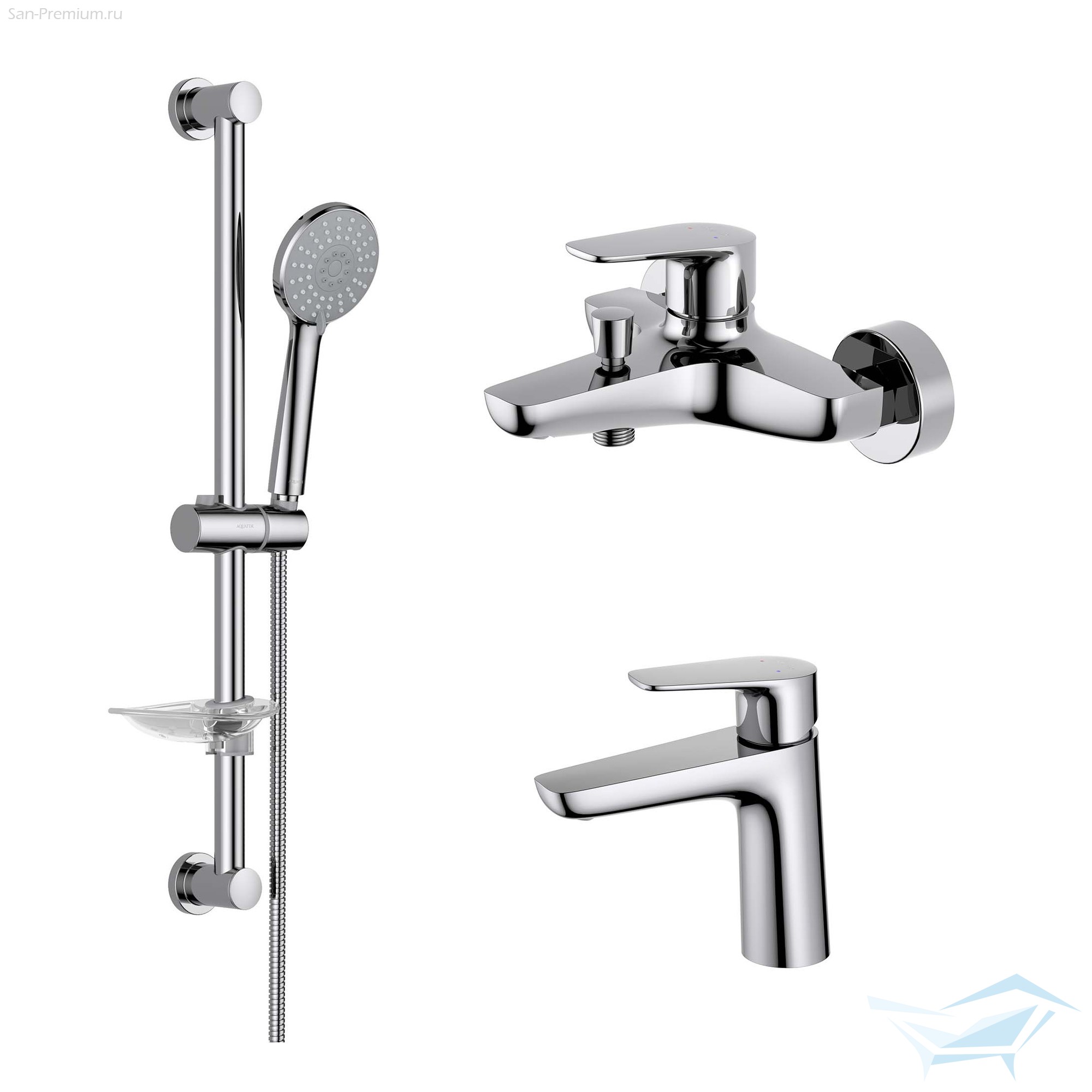 Набор смесителей для ванны Aquatek Бетта, душевой гарнитур, хром / AQ1130CR
