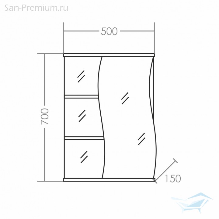 Зеркальный шкаф Санта Волна 500x700x150, правый,белый