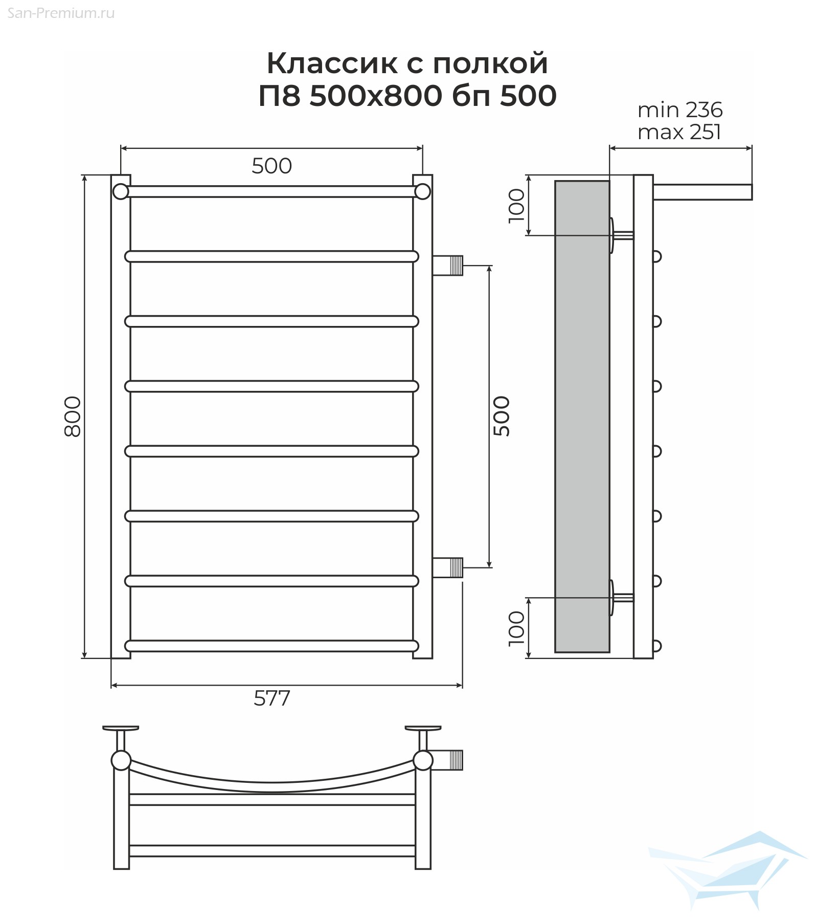 Полотенцесушитель водяной Terminus Классик с полкой, П8 500x800 бп500, сталь полированная