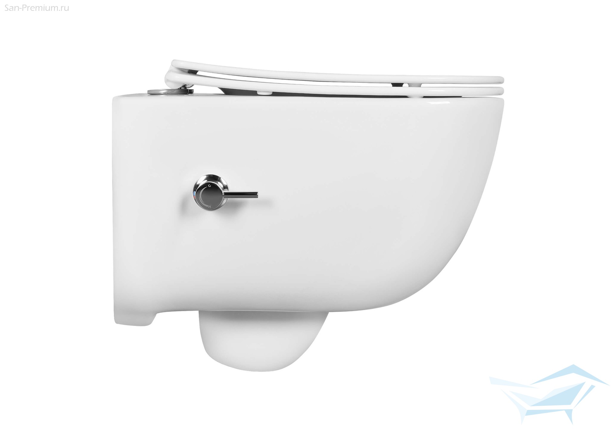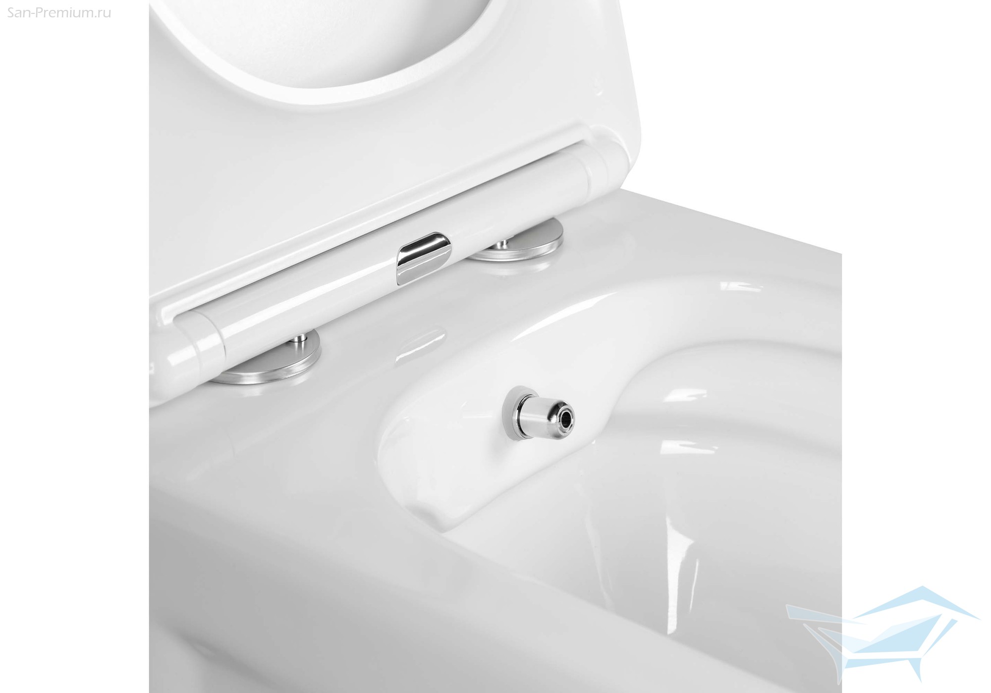 - Особенности: без ободка, сиденье с микролифтом, функция биде