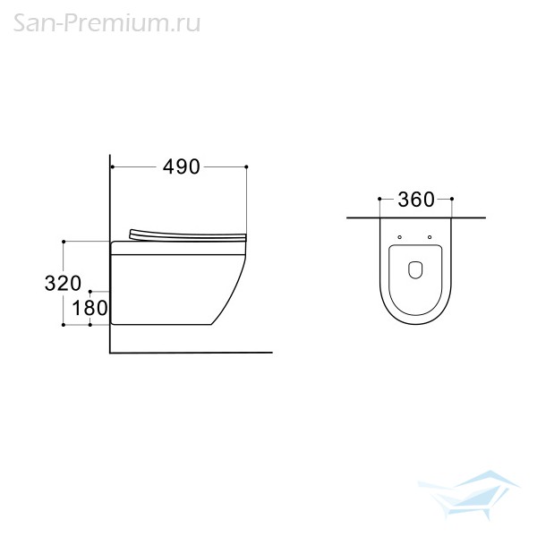 - чаша унитаза безободковая, смыв Tornado, размеры: 490 x 360 x 320 мм