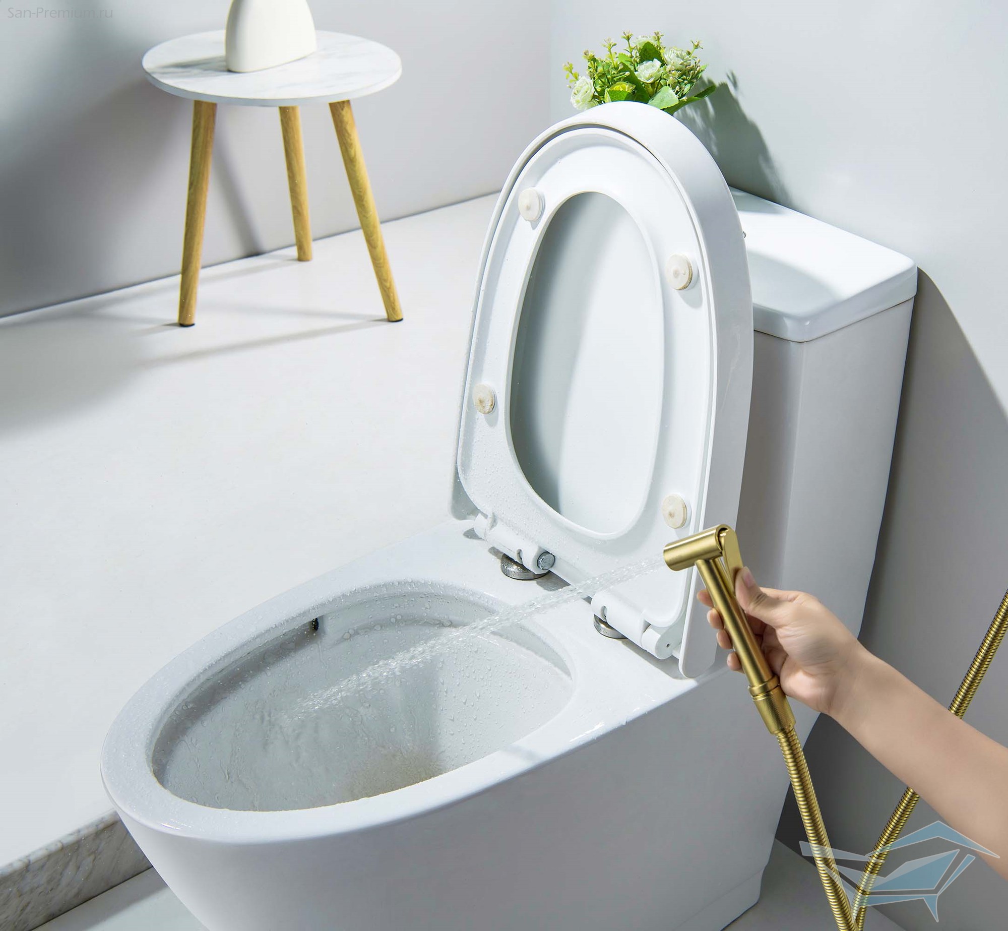 Ручной душ гигиенический Aquatek цилиндр, шлифованное золото / AQ2057BG