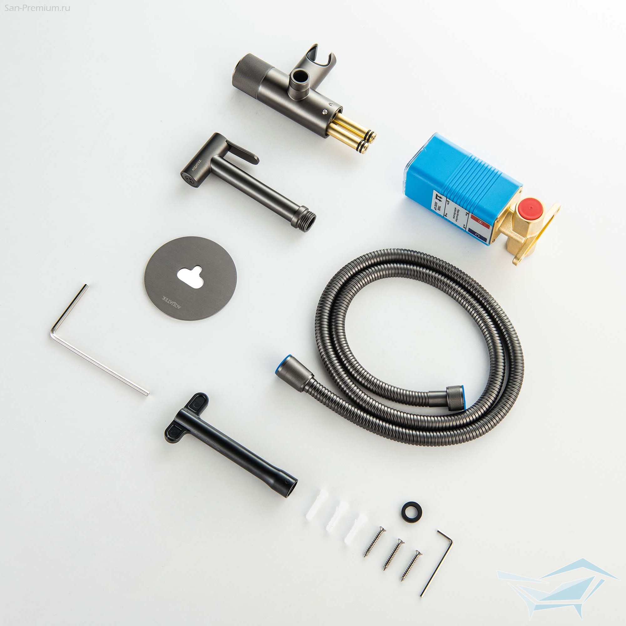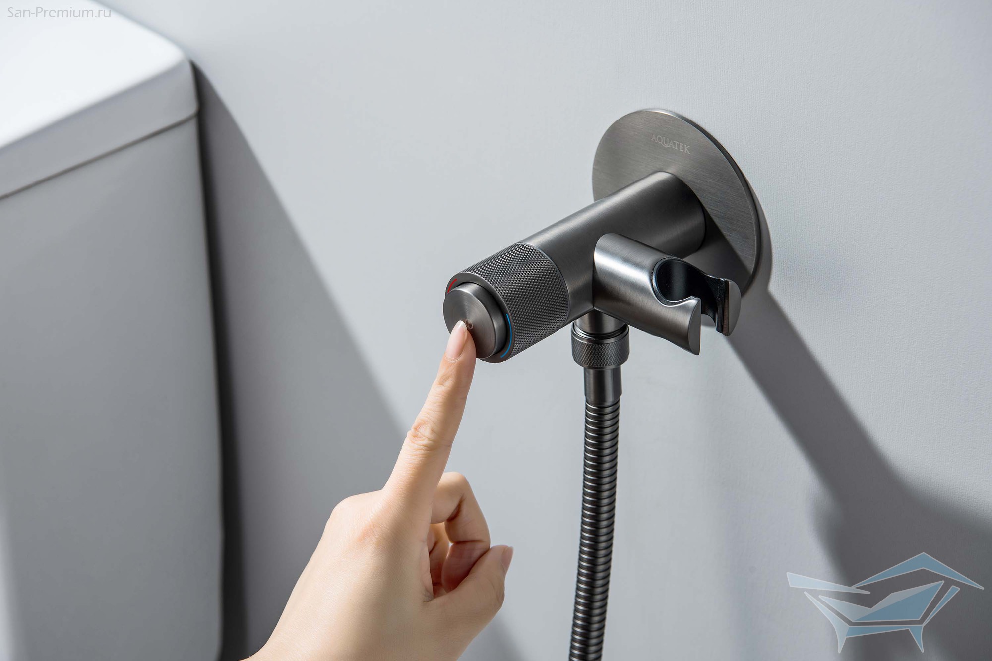 Смеситель с гигиеническим душем Aquatek Бетта Select Click-open, встроенный, оружейная сталь / AQ1023BGM