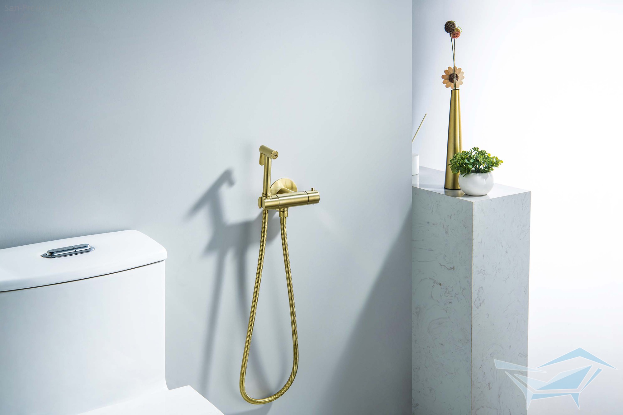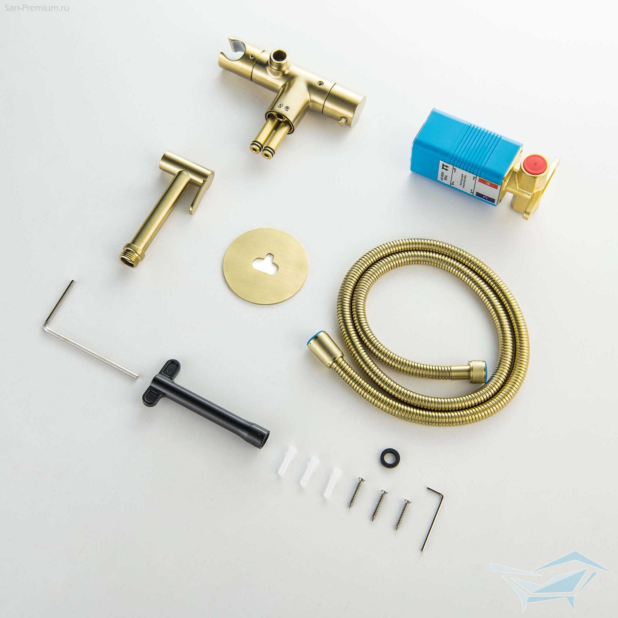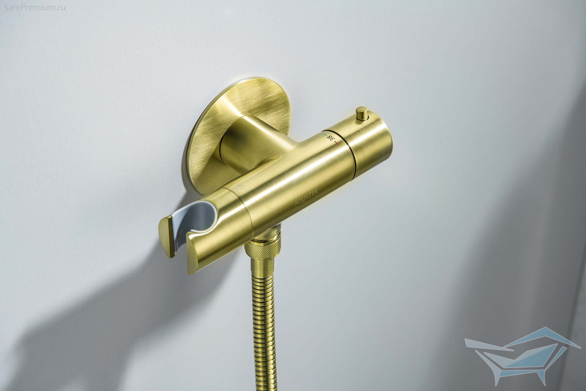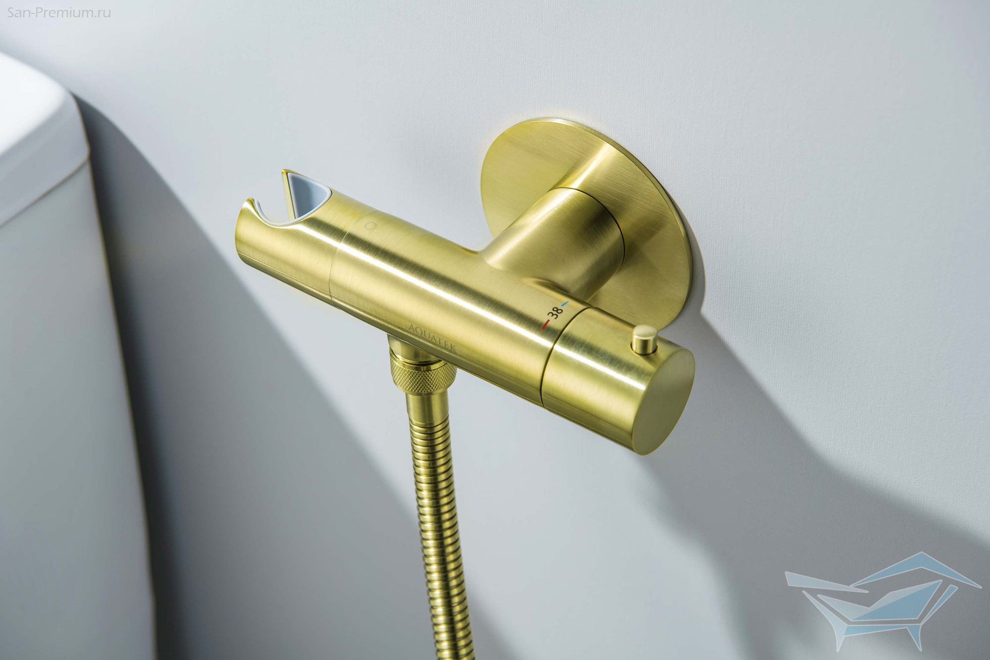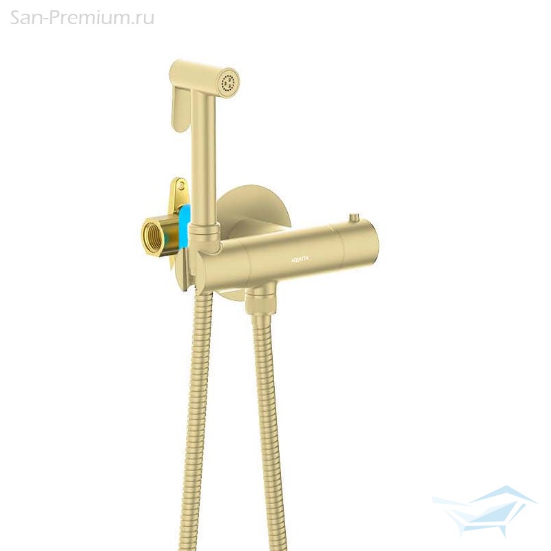 Гигиенический душ с термостатом Aquatek Оберон, встраиваемый, шлифованное золото / AQ1027BG