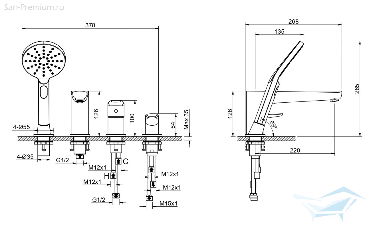 - Монтаж: горизонтальный, на борт ванны