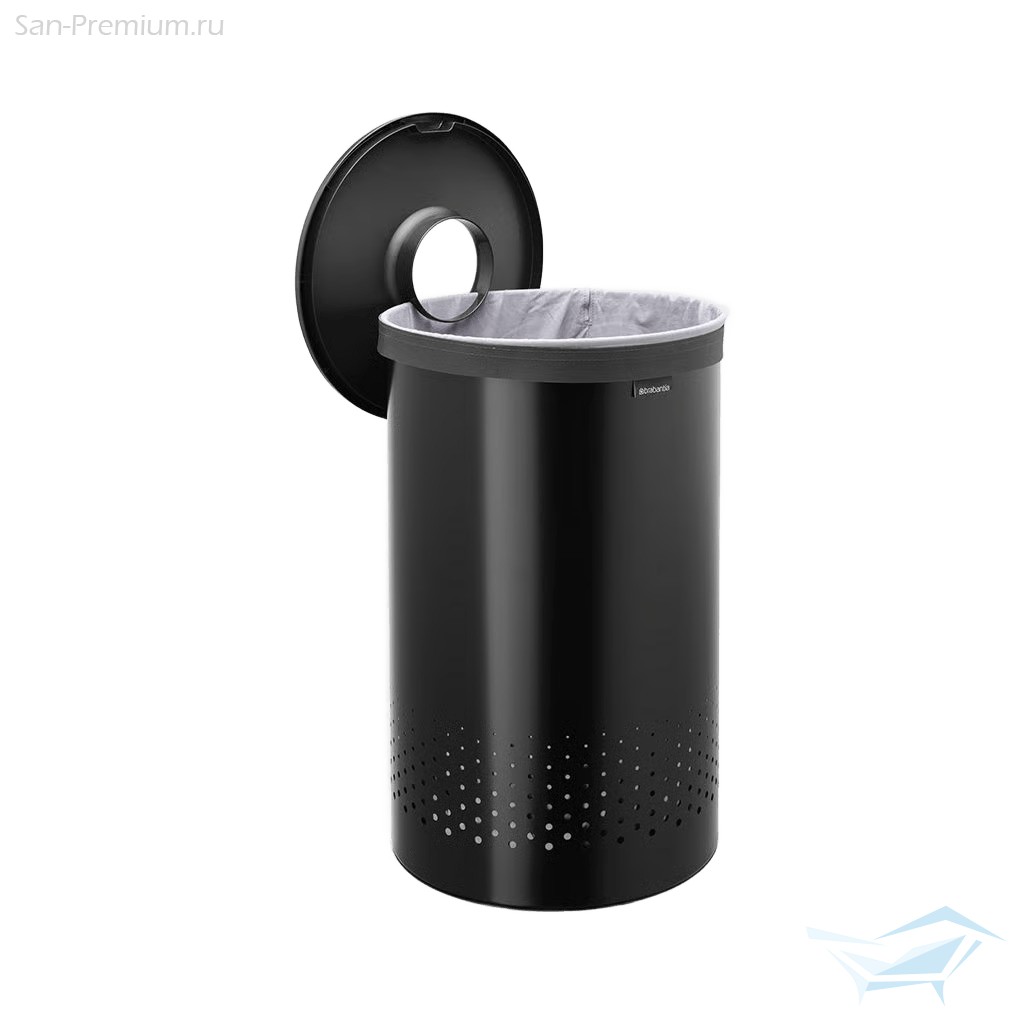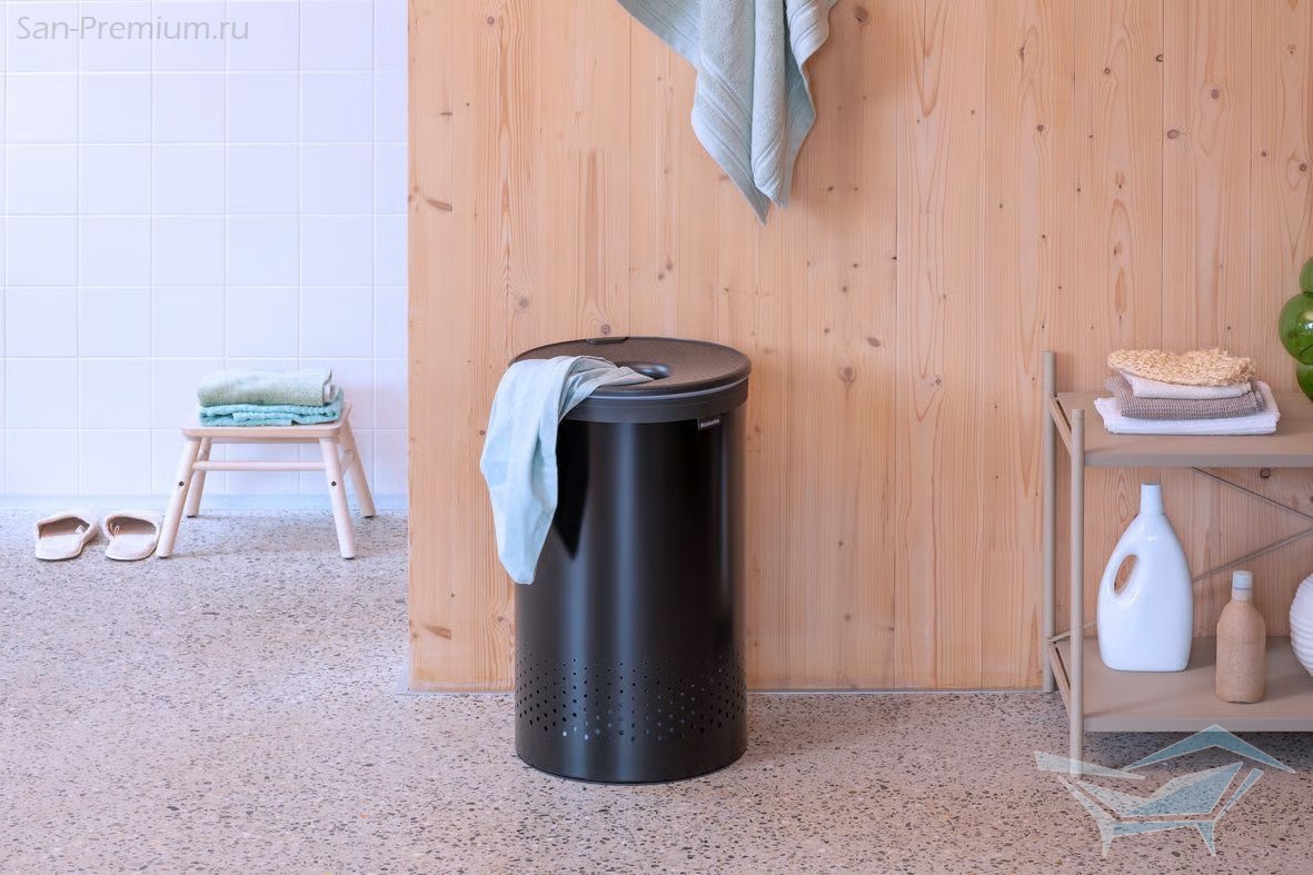 Бак для белья Brabantia 60л, круглый, с мешком, с пластиковой крышкой, матовый чёрный / 242380