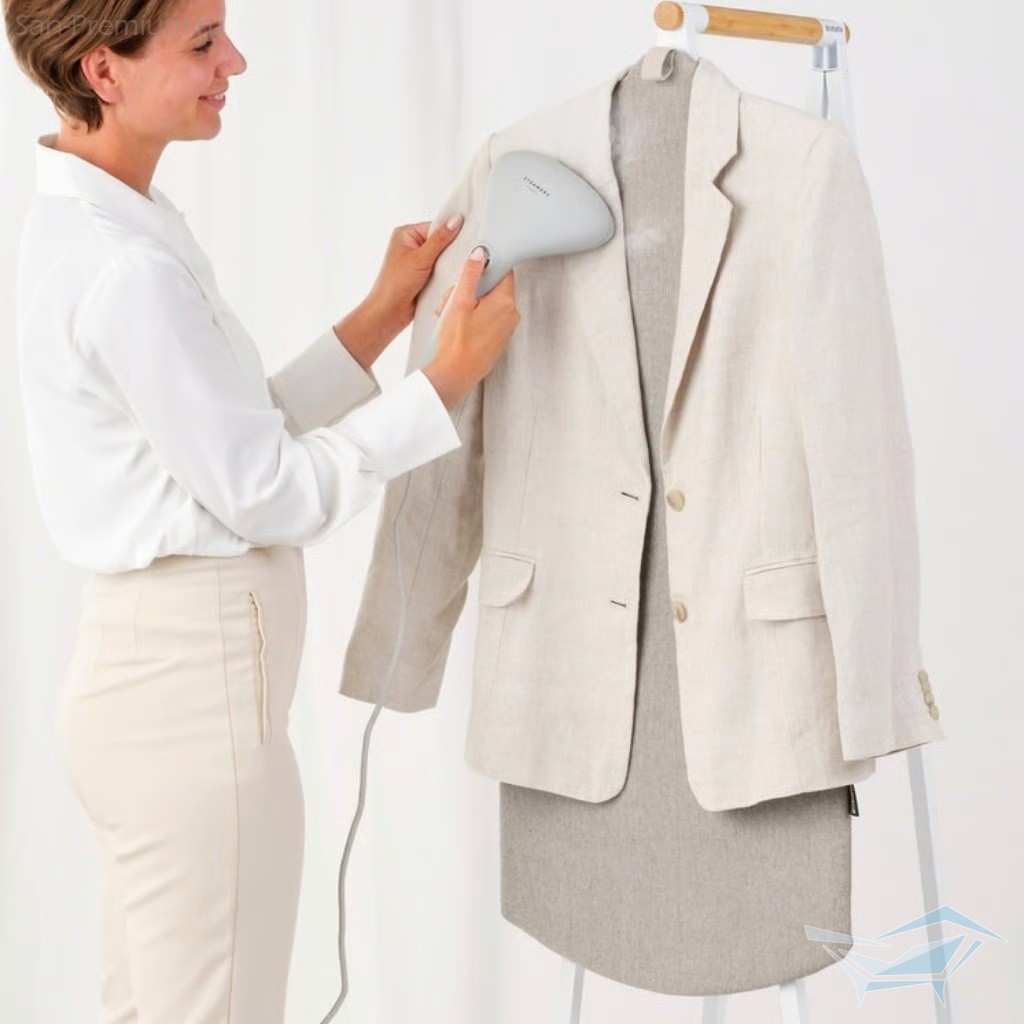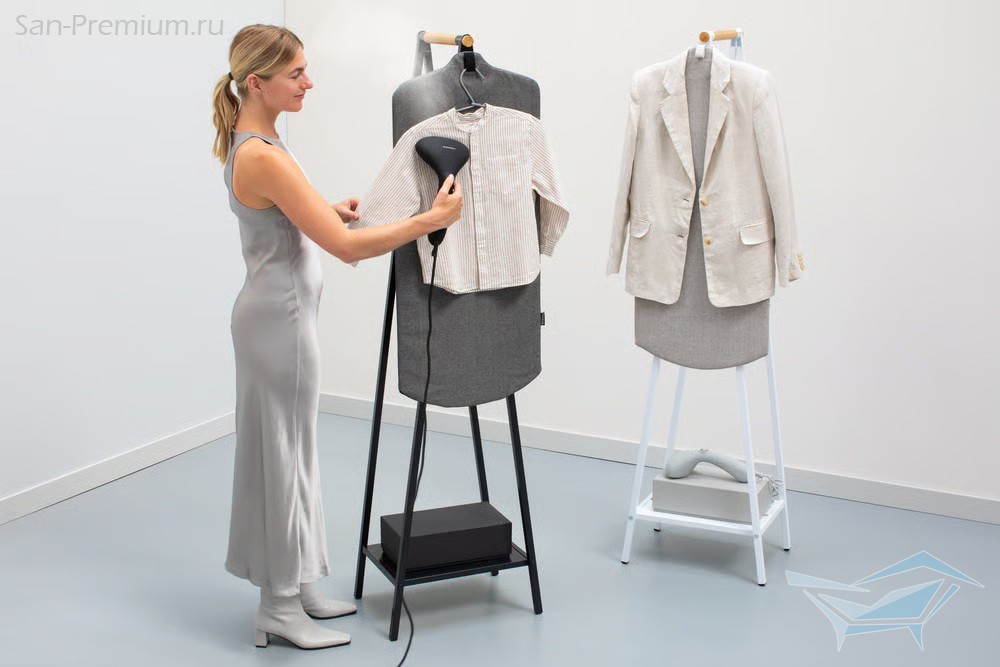 - Экономия места — вертикальное отпаривание вместо горизонтального глажения.