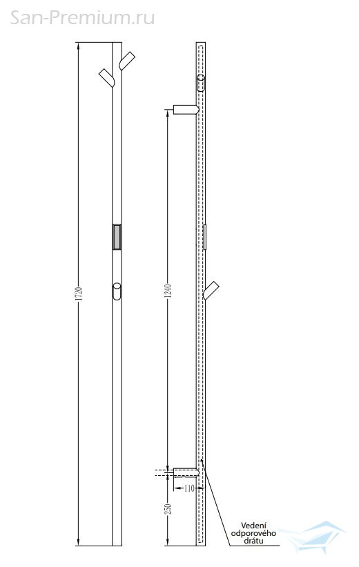 Электрический полотенцесушитель Bemeta, прут, 1720x125, 46W, нержавеющая сталь, чёрный матовый 704151000