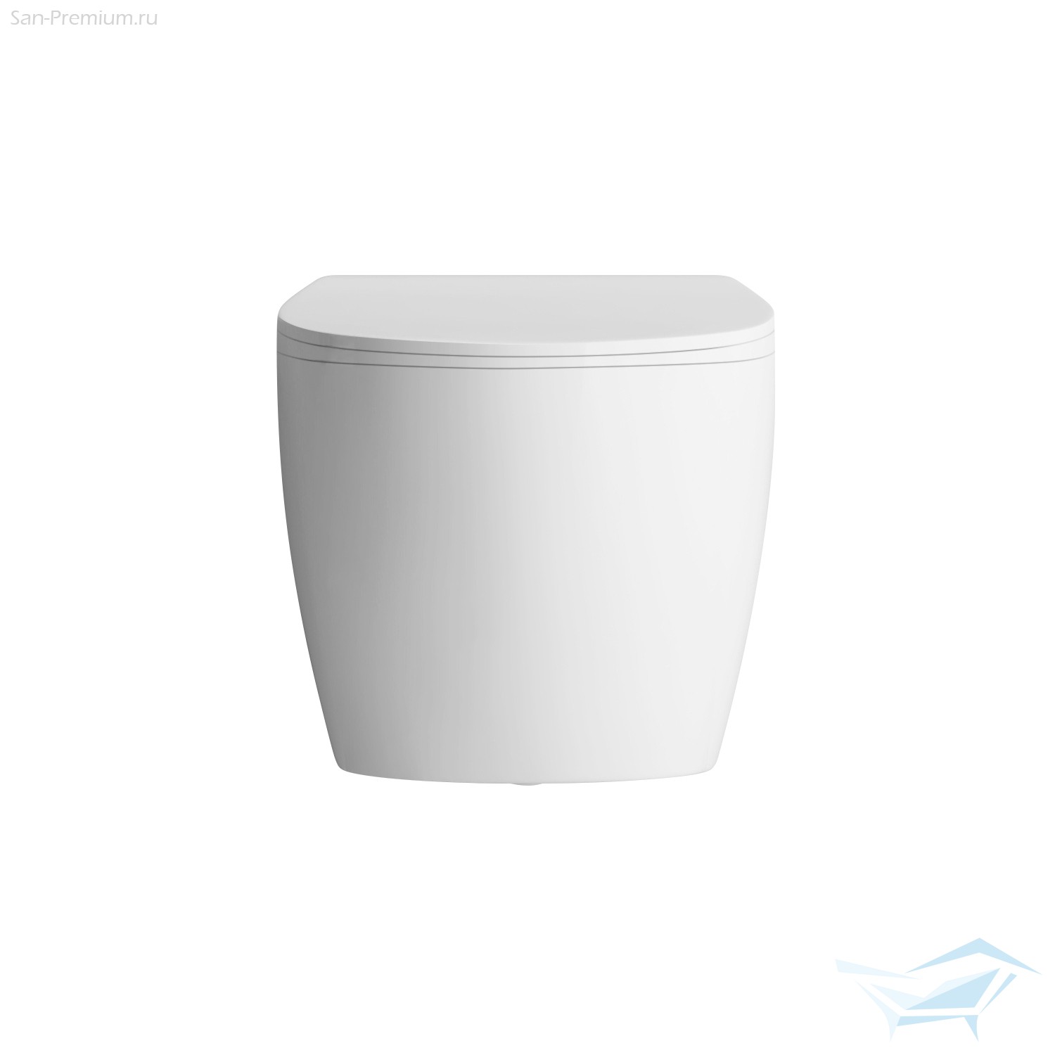 - Особенности: без ободка, закрытое колено, сиденье с микролифтом, смыв Торнадо