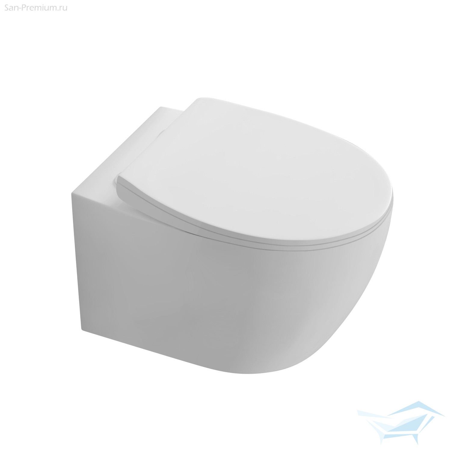 Унитаз подвесной Aquatek Сириус Tornado, безободковый 520x360x350, тонкое сиденье с механизмом плавного закрывания, белый