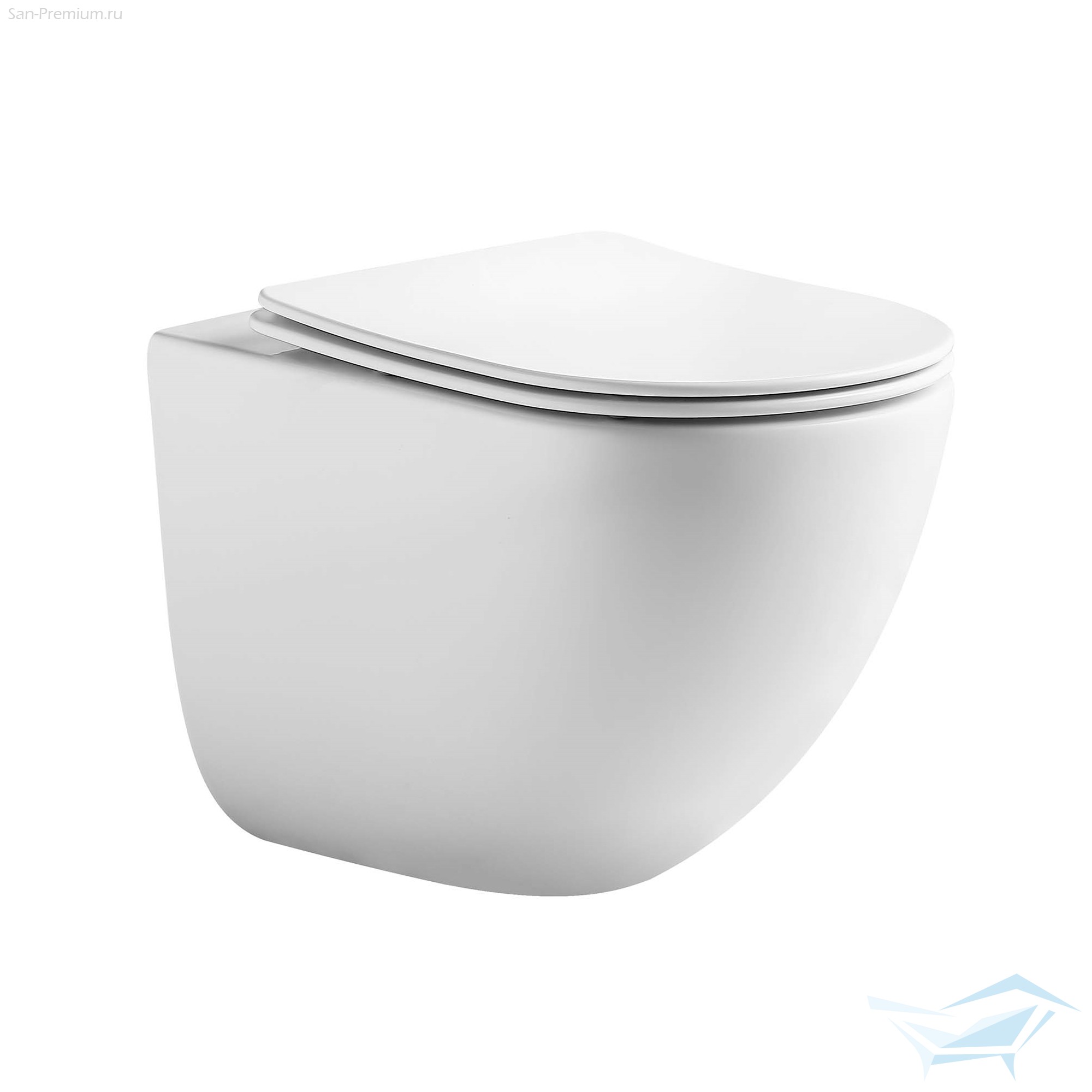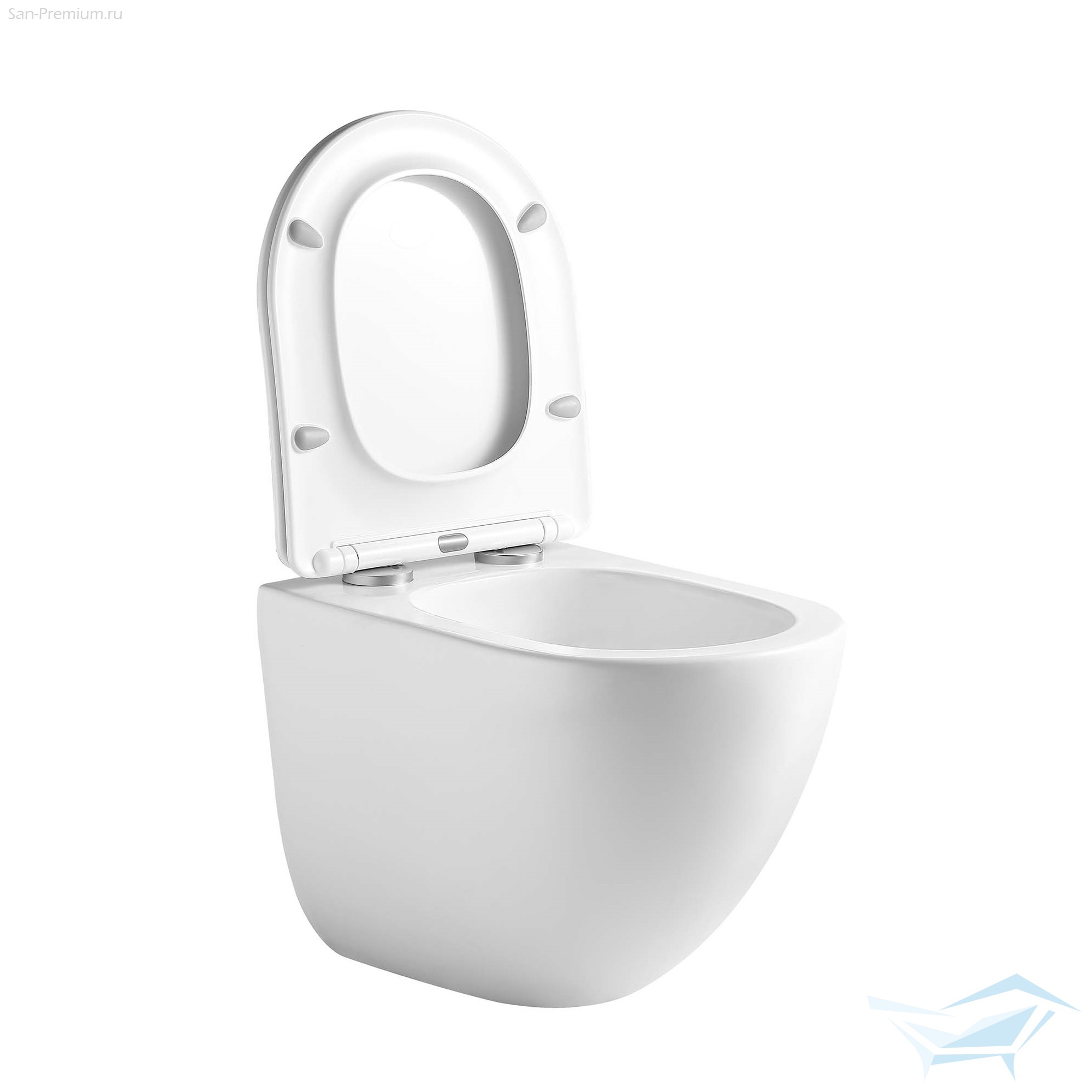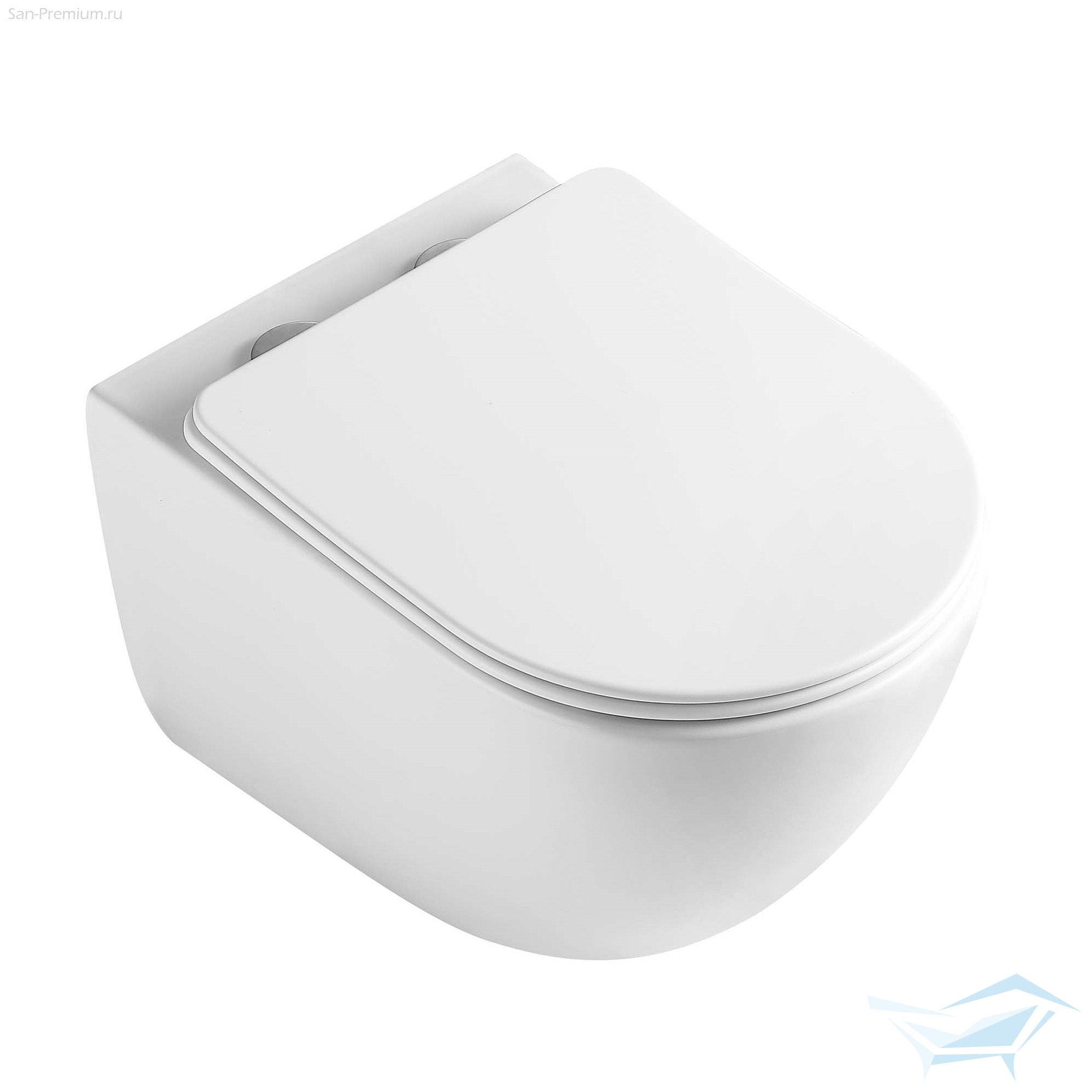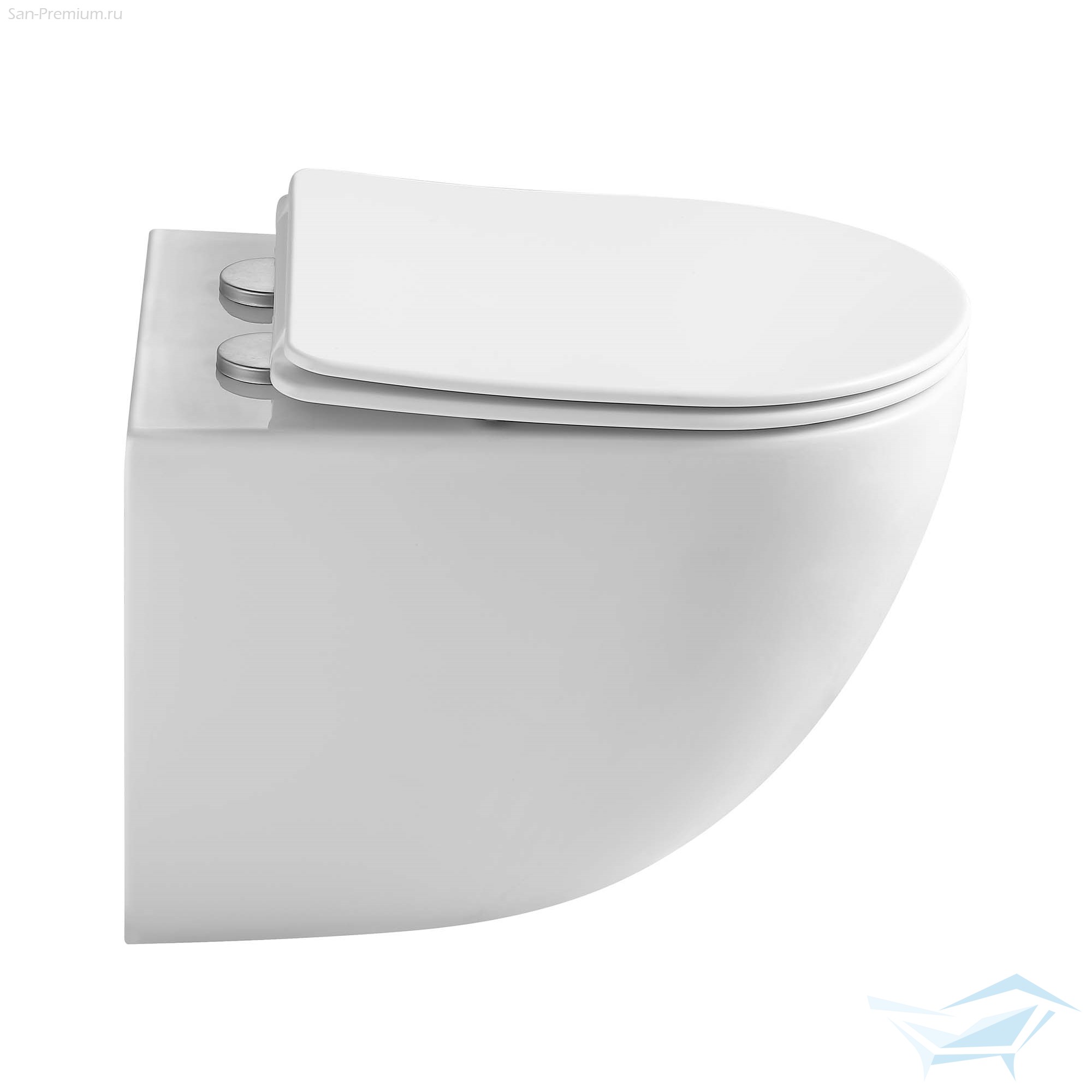 Унитаз подвесной Aquatek Гелиос tornado, 505x360x370, безободковый, закрытое колено, сиденье Soft-close