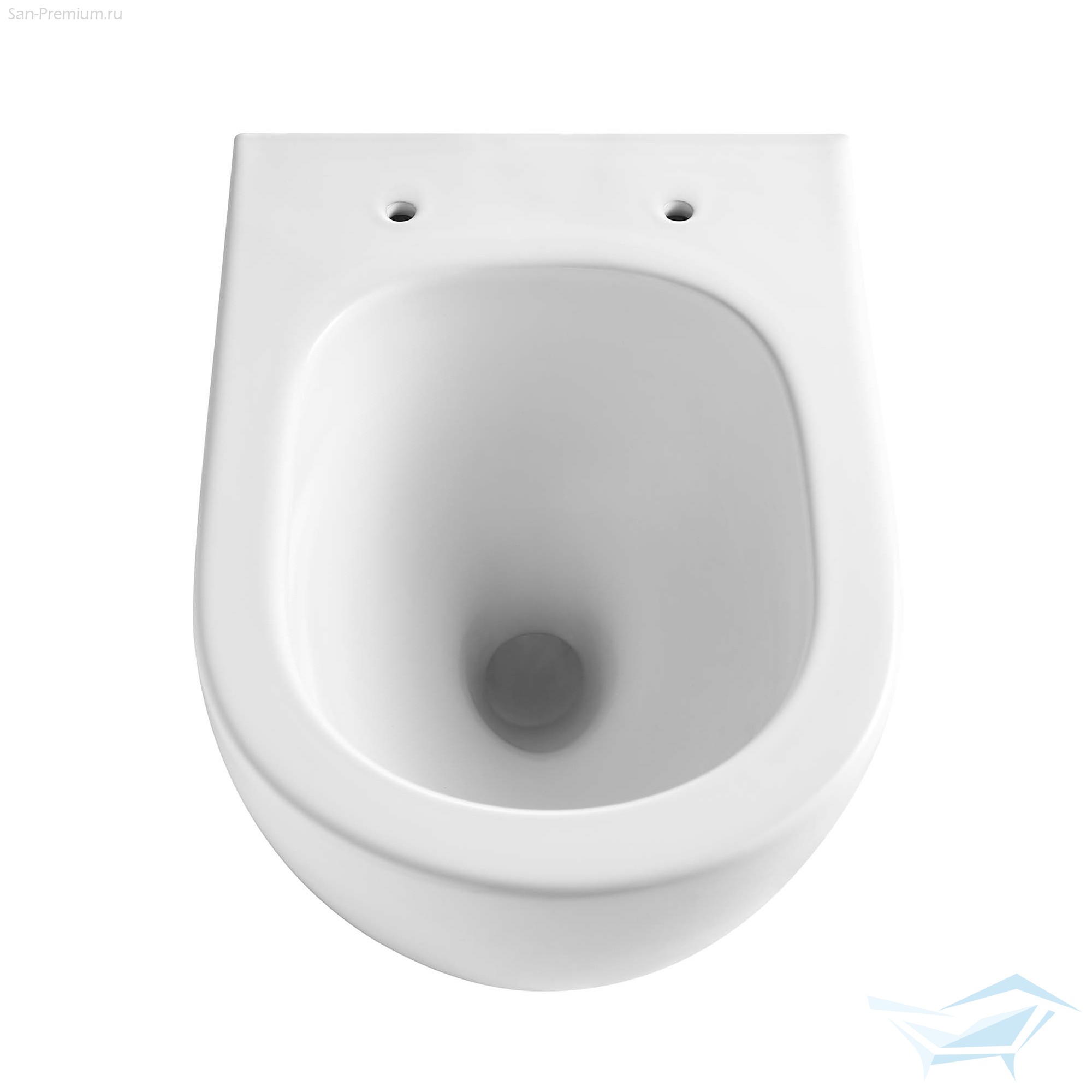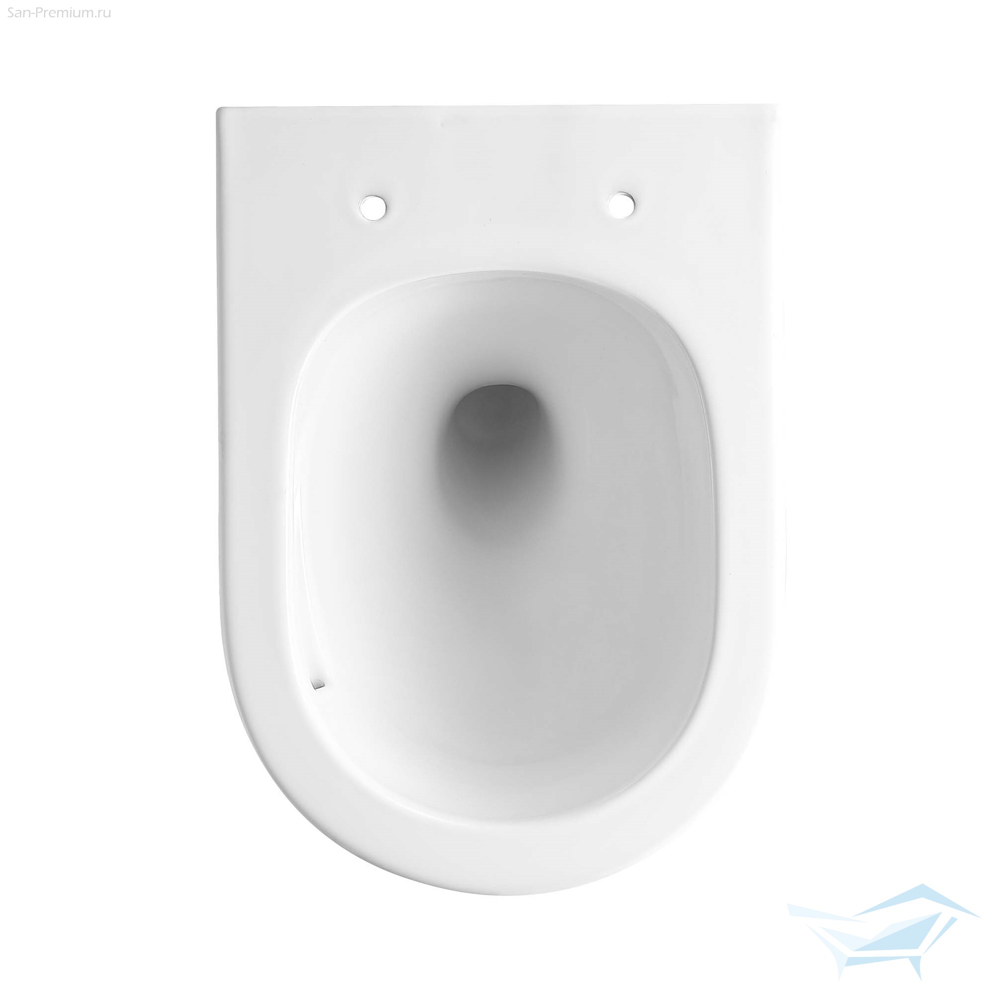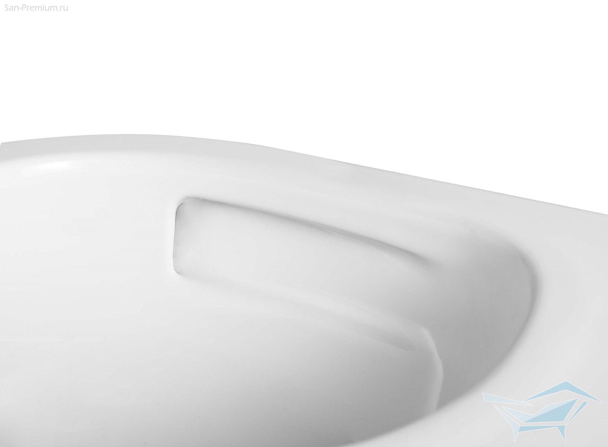 - Особенности: без ободка, закрытое колено, сиденье с микролифтом, смыв Торнадо