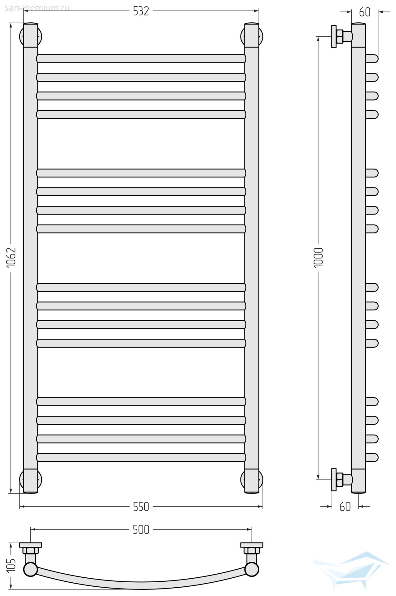 Полотенцесушитель водяной Сунержа Богема+ выгнутая 1000x500, золотой шёлк 32-0221-1050