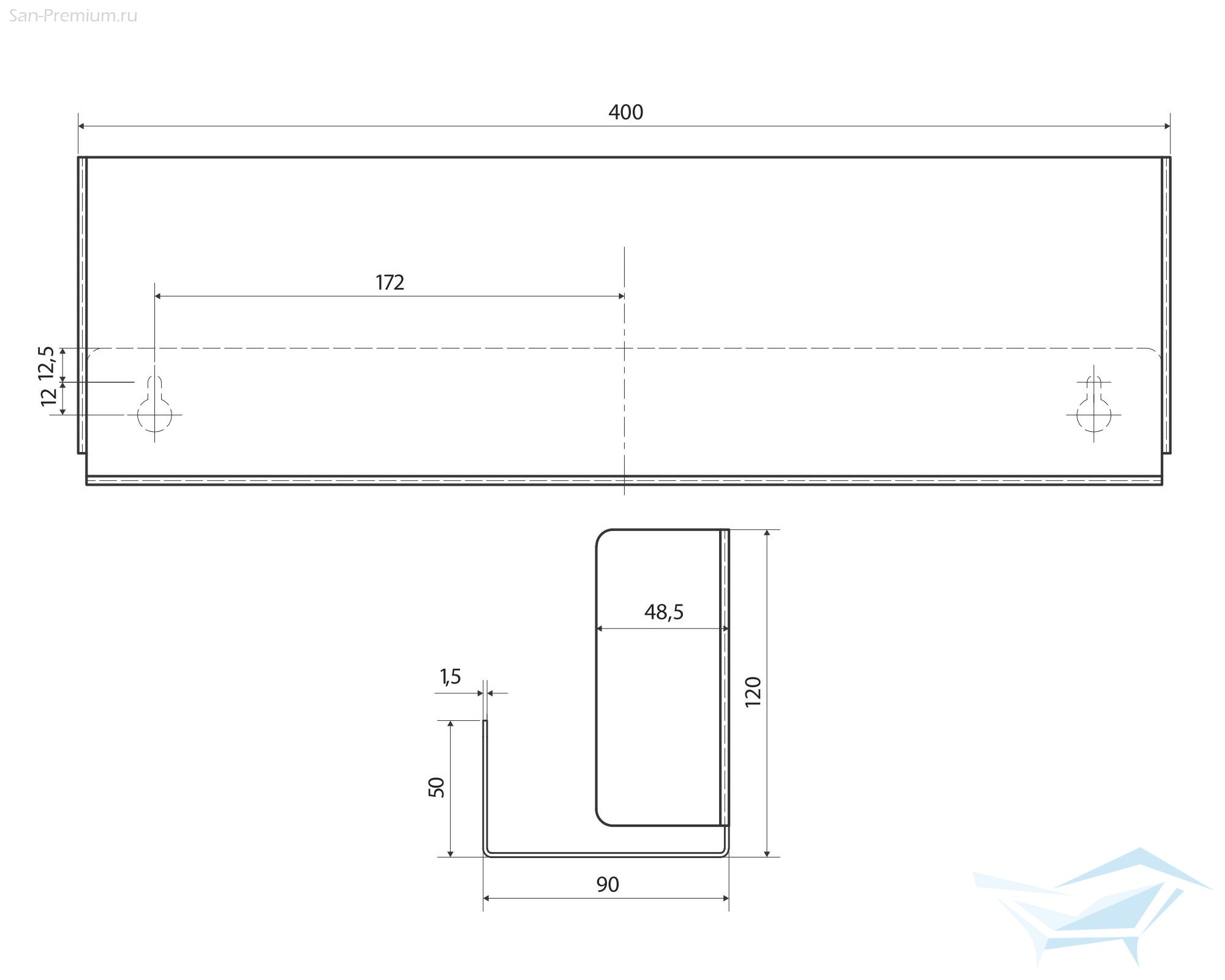 - размеры: 400 х 90 х 120 мм