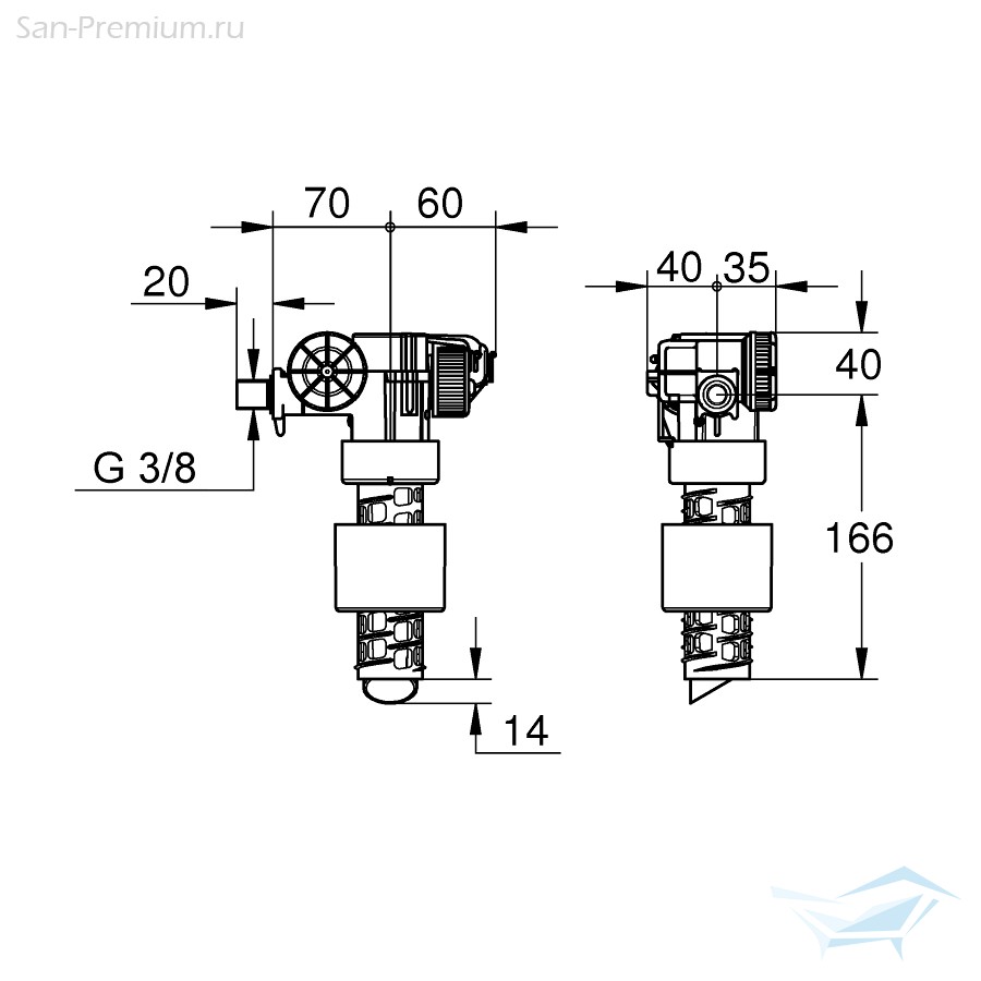 Наполнительный клапан для встроенных бачков инсталляций GROHE