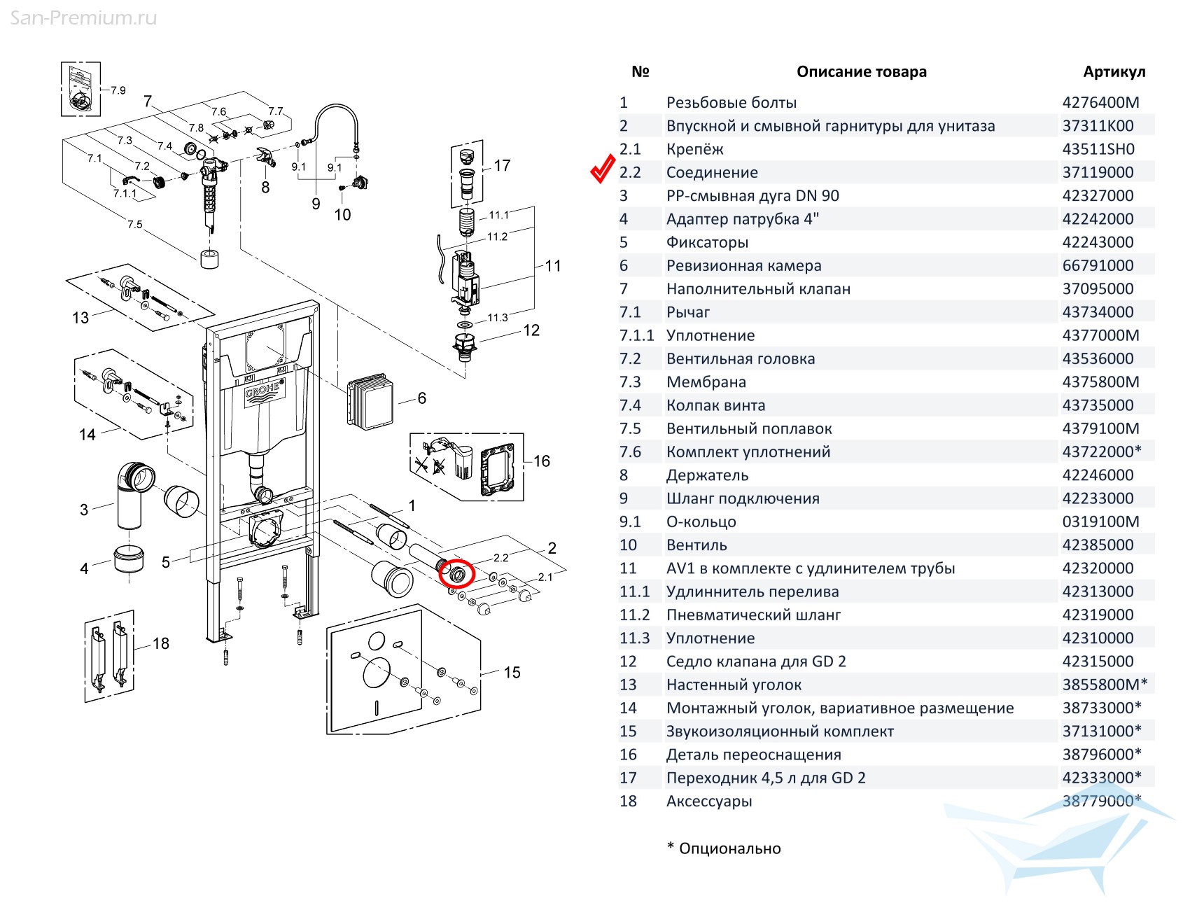 Манжета соединительной трубы Grohe для подвесного унитаза, инсталляции, без упаковки 37119000