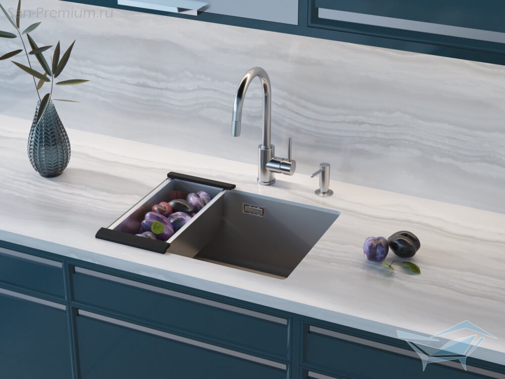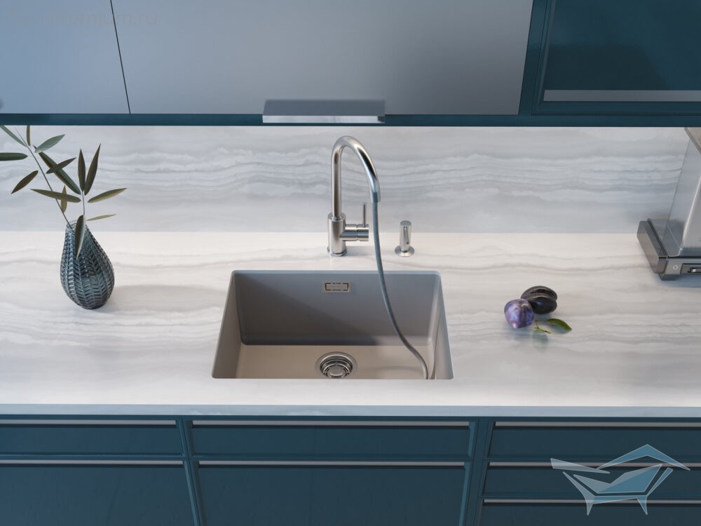 - За счет инновационных добавок в составе композитного материала, ARTGRANIT имеет гладкую поверхность и очень плотную структуру, не позволяющую каплям жидкости и грязи проникать глубоко внутрь мойки, отталкивая частицы воды.