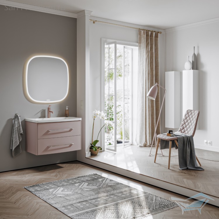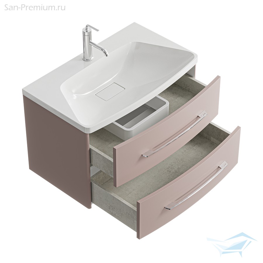 Тумба под раковину Aqwella Neringa 80см, подвесная, с двумя ящиками, Пепельная роза