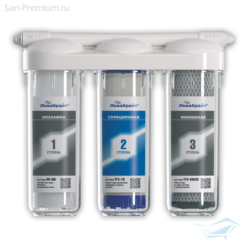 Система очистки воды Аквабрайт АБФ-ТРИА-СТАНДАРТ БКР, трёхступенчатая, без крана / АБФ-ТРИА-СТАНДАРТ БКР