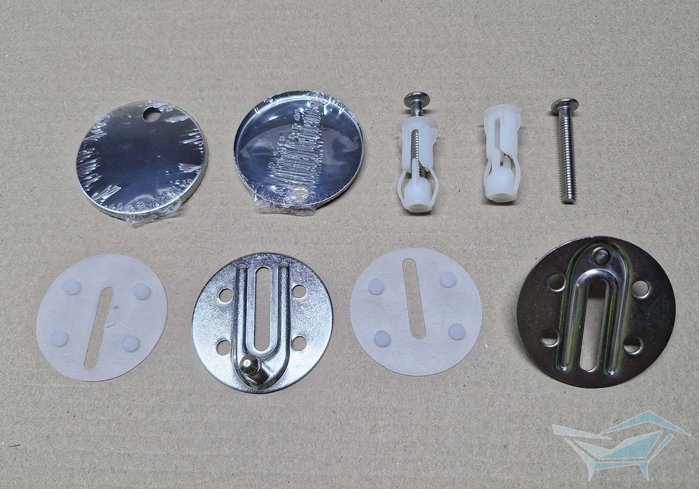 Крепления металлические, с возможностью регулировки по длине и ширине относительно крепёжных отверстий унитаза.
